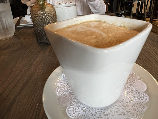 My first visit was as a party of three. We were seated right way as we had reservations. The wait staff was attentive and came over quite often to check on us in the beginning and then toward the end of our time there we noticed that we didn't see much of him, not sure what that was. As for our food, I had a breakfast platter and I was disappointed. I had two scrambled eggs, beef sausage, brioche bread toast and potatoes. With my toast I asked for butter and strawberry jam and when it arrived it didn't have strawberry jam or butter on the side so I asked for that again it took a little too long and I was hungry so I said OK I'll just go ahead and use this grape jelly. My bread was stuck together so when I pulled the bread apart I was surprised to see it had already been buttered and the jelly had already been applied. Unfortunately, because of that- my toast arrived soggy. I've never been to a restaurant where they butter it for you and put the jam on for you. I found that very strange. Also, my sausage was cold. One person in my party had the creamy pesto with shrimp they liked it the other person had some chicken wings and they had the crab dip. The entire time the two people in my party were complaining about their eyes burning/stinging. I didn't have that problem until about 15 minutes before we were about to leave I started to experience it too. One member of my party had to get up and actually walk outside because the stinging and burning was too much. The two people in my party ordered peach Bellini's and they liked them. I ordered the better than OJ and didn't care for it at all. I did enjoy the drip coffee, I had 2 cups with oat milk creamer-very, very, very good; it definitely did not disappoint. As for the ambience I thought it was cute. Both of the walls along the sides of the restaurant lined with original artwork from different artists and each one has the name of the piece and the sales price. The entire time we were there we had to swat away flies and we mentioned it to the staff they didn't seem to really care but the flies were definitely...