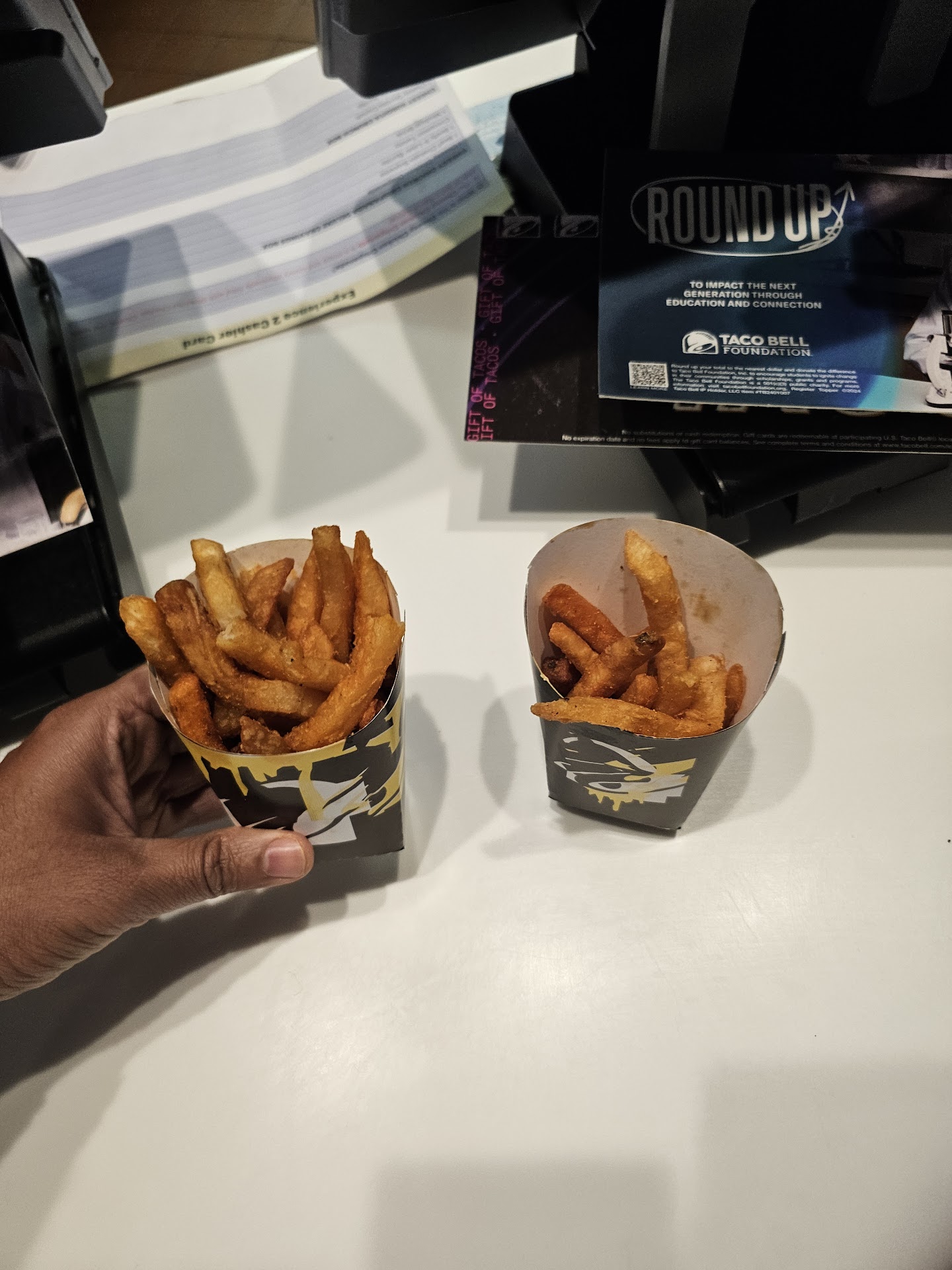 Read moreMy experience was horrible. When I walked in, there were two people at the counter waiting for their food, and there was a family sitting down. So I went to the kiosk to order my food. I spent $52.00 dollars & my time stamp on my receipt was 11:16 a.m. There were two employees in the store. I sat for about ten minutes and then realized it was only one employee working behind the counter,his main focus was the drive thur. I understand that's the priority. However, there is something called multitasking. He could've made a taco or two in-between the drive-thru orders, but that's too much like right. He simply annoyed the lobby. An employee came over from KFC to assist. The young man was very efficient, but after he left, the service went to hell. Two Taco Bell employees came in within a few minutes of each other and once again back to square one, pushing out drive-thru orders. The last part of my order was nacho fries, which took over 15 minutes. I didn't leave until 12 p.m. I will not be back! Yes, the location is close to my home, but I will drive out of my way to avoid this place. There is no excuse not to communicate, a simple "I'm by my self," you may have to wait or there another location on such & such street. Geez,...