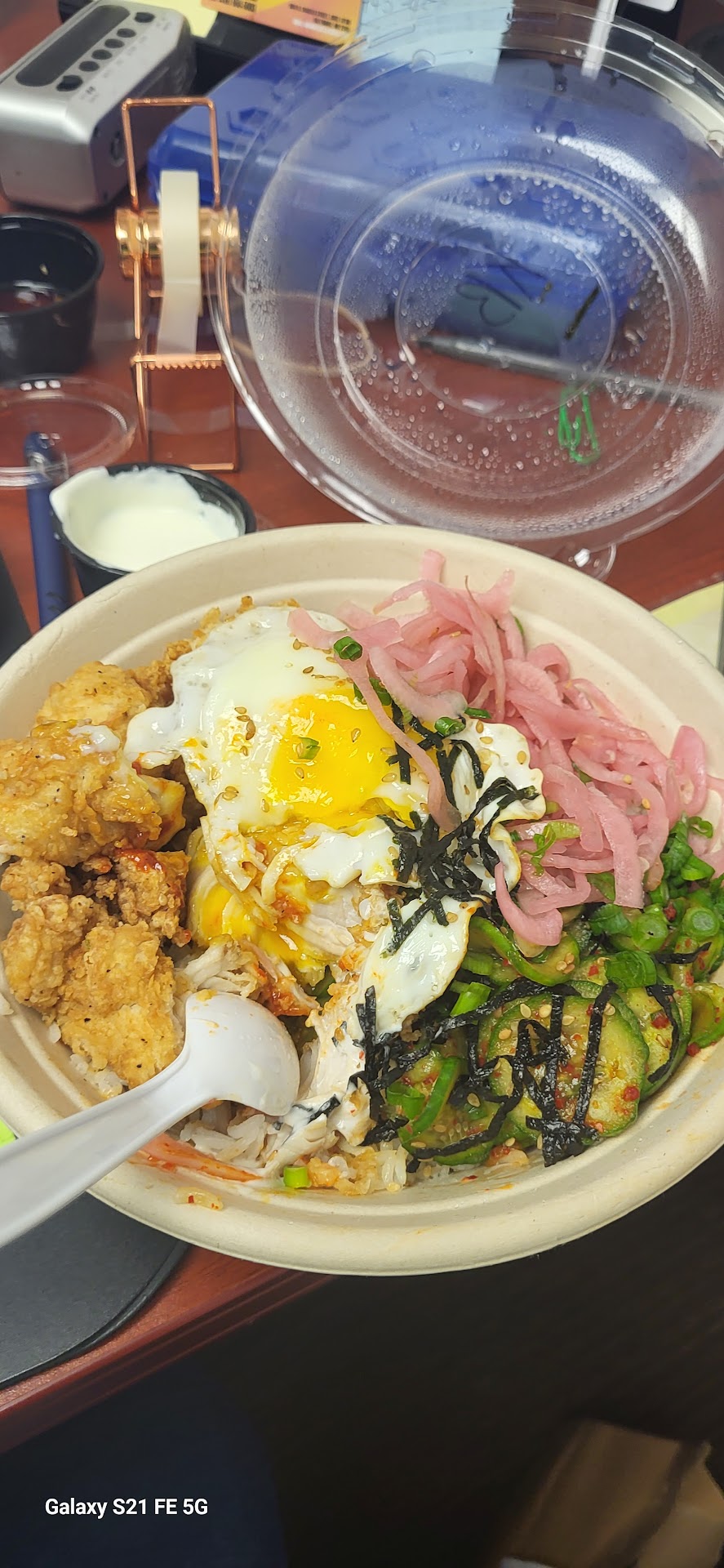 I ordered the Vienamese Bowl with chicken via delivery. The bowl was pretty okay however, I dont know if i would order it again. They call them "rice bowls" and the amount of rice they give you justifies the name; personally i don't want a big bowl of rice..it's fattening. The chicken pieces were fried and the size of extra large chicken tenders ( I didn't like that). I ordered a bunch of different sauces so it helped with the flavors. The chicken just seemed to be fried, no seasoning. I also ordered the honey garlic wings and was severely disappointed. The wingettes were huge ( I hate steroid wings), and I barely tasted any honey. They were not flavorful and considering the rave reviews the wings have gotten, I was surprised. But anyway, check them out and jusge for yourself. They have one more rice bowl, I want to try ( the Korean Bowl) and that will determine if I'll be back