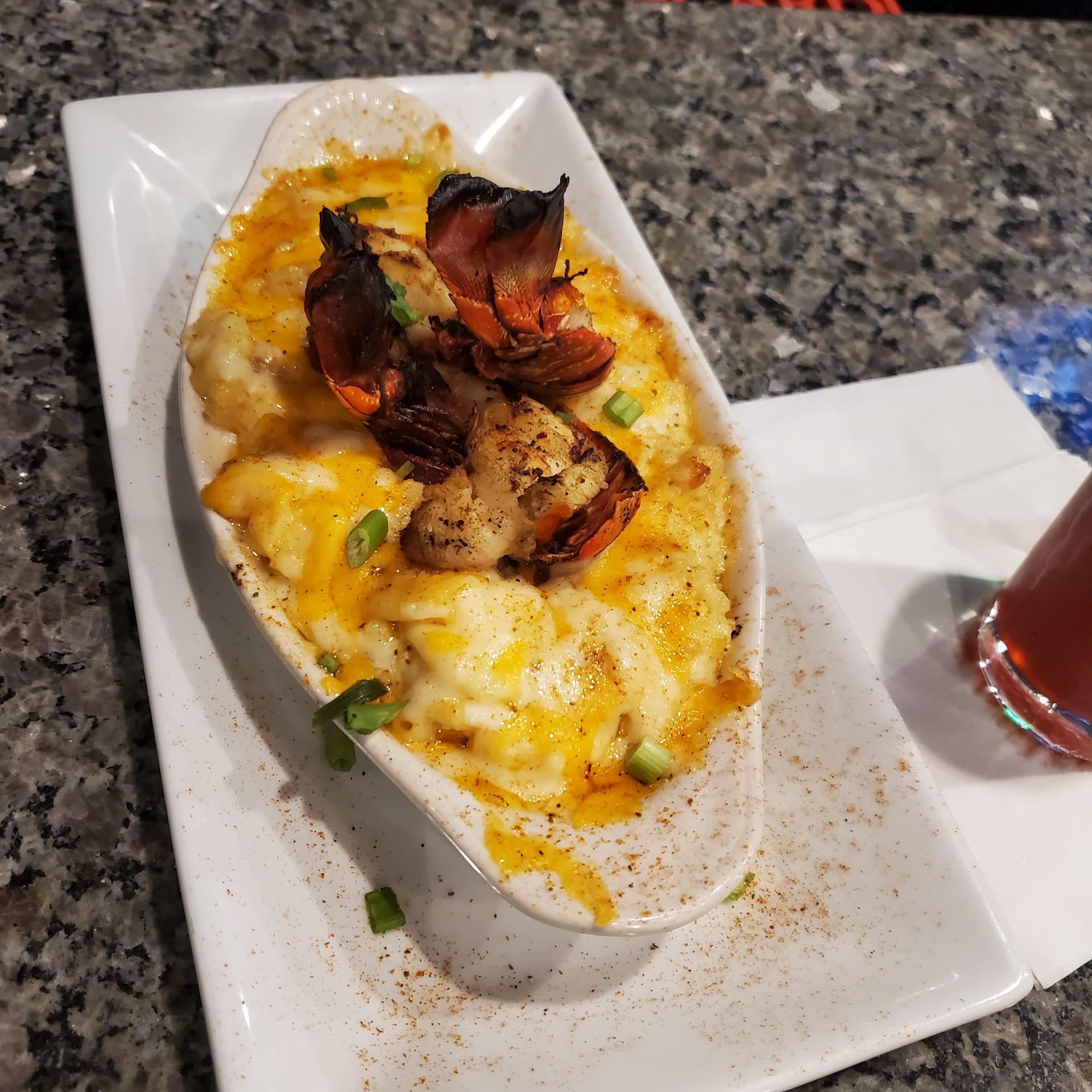I visited this restaurant yesterday (Friday night). I gave the restaurant 2 stars only because the ambiance and the vibe And the strawberry Long Island and peach frozen drink is BOMB 🔥🔥🔥! It’s a very nice looking place. HOWEVER, everything else was horrible. The service was terrible. Our waiter barely waited on us we had to constantly flag him down and ask for drinks or anything else. By the end of the night he had an attitude and seemed to take it out on us which was not pleasant. Now, the food... the menu- everything looks so good. I had the crab soup which had abosolutely NO flavor and NO crab. Just a cream broth like bland soup.. I also had the lobster Mac and Cheese that smelled horrible! The lobster was overcooked and it had a “funky” odor. I barely at any because the smell was off putting! I spent $43.55, plus a $5 I gave him that he didn’t even deserve but I wouldn’t dare not leave something and I’m a good ripper usually especially my is the service is on point, on a meal I did not enjoy AT ALL. I wish I could add a picture of meal but...