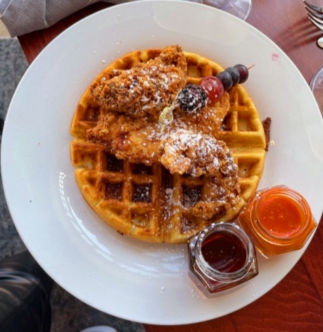 Our food order was taken after a 50-minute wait, yet the dishes that arrived were of substandard quality. We were served lukewarm food, ranging from overcooked to outright burnt. The French toast was dense and chewy; the chicken, overcooked and burnt; the eggs, unseasoned and cold; the biscuits, dry and unappetizing.