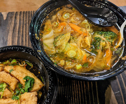 I came to this place with some hesitation at the suggestion of a friend as Pho options for vegetarians are generally mediocre at best, but Red Boat has definitely raised the bar. It is a medium-sized, order-at-counter restaurant, and it was not crowded on a Monday night with plenty of seating available. I ordered the Tom Yum Pho (100% Vegan) and added fried tofu (total ~$13). This Pho was a lemongrass & Chilli paste flavored soup with mushrooms, basil leaf, broccoli, cabbage, carrots, cilantro & onions served with lemon, jalapenos, and bamboo shoots. The dish was clearly made to order and the ingredients used were pretty fresh, which was pretty impressive for a fast food type place. Similar to the other reviews about this vegetarian Pho, I was seriously impressed with the broth they offered!! Many places fail to deliver on vegetarian broths, but this tom yum broth had flavor-packed punches throughout the entire bowl; not an ounce of it remained by the time I finished. Their noodles were pretty good, the vegetables tasted relatively fresh, and the tofu was fried pretty well. I think the only change I would make is for the dish to be just slightly less sour.