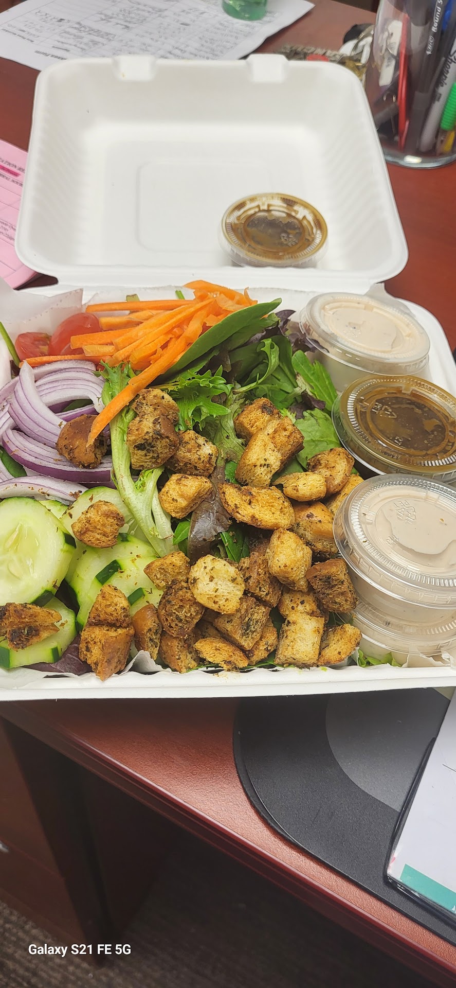 Our server must have been very busy. Once seated, it took some time to get to our table, so the server took our drink + food orders at once. Drinks came out pretty quick, food at a good pace. Fish n Chips are excellent, as were the pretzel bites offered as a dessert. The Bang Bang Chicken Sandwich didn't have much bang, more sweet.