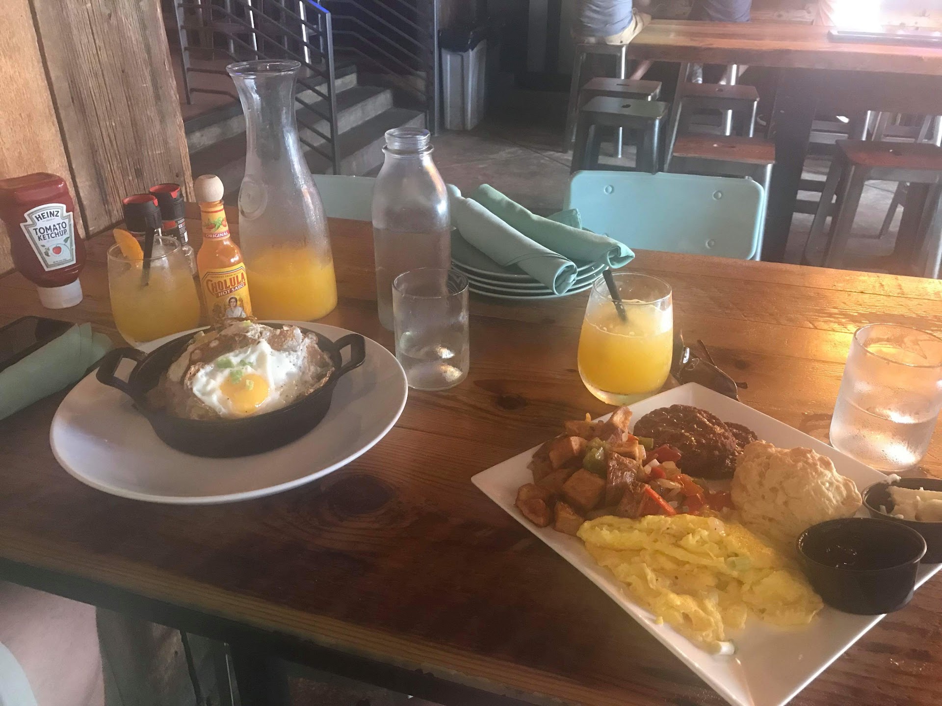 Read moreWe ended up here for brunch totally by accident. We went to have brunch next door, but a power outage created a delay in opening. So, while waiting for that restaurant to open, we wandered down to take a look at Wayward. The atmosphere was very much our style, and since they were opening at the same time as the other places, we decided to try it out. We were not disappointed. The mimosa carafe was not only a great value, the beverage itself was fantastic. Made with fresh squeezed orange juice and ice cold, they were easily the best I’ve had outside of my own home. The carafe yielded about six servings-perfect for two of us. The brunch portions were stupendous. We could have easily shared one plate. I had the Morning Routine skillet. The pork had a great, but not over powering, smoky flavor and the hand cut fries remained crispy throughout the meal. It was really great. My girlfriend ordered the Country Platter and everything included was equally great. If we every find ourselves in Baltimore again, the Wayward will definitely be on our...