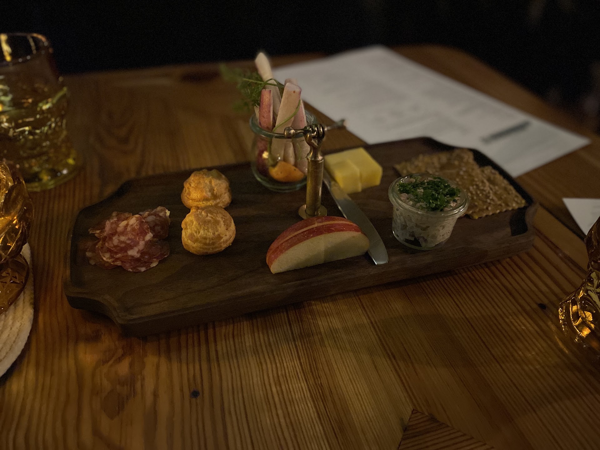 Items to Consider: We started the evening with a cheese plate. The pairings were unique and delicious. It was really fun to experiment with the different items on the plate and discuss the different flavors. For dinner we enjoyed the Chicken and Biscuits and the Lamb and Egg Noodles. The chicken and biscuits were deliciously prepared in a cast iron skillet. The chicken was moist, flavorful, and had crispy skin. The biscuit was fluffy and well prepared. The slow cooked Lamb and Egg noodles had a very good flavor, but I was slightly disappointed that the egg noodles were spaghetti noodles. It took away from the hearty nature of the meal. Also, there were only 3 or 4 bites of lamb in the dish. I would expect a more hearty portion of lamb with this meal, especially with the pasta choice and price. Definitely leave room for dessert and try a trio of their ice cream; especially the toasted oat!