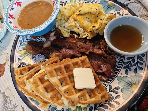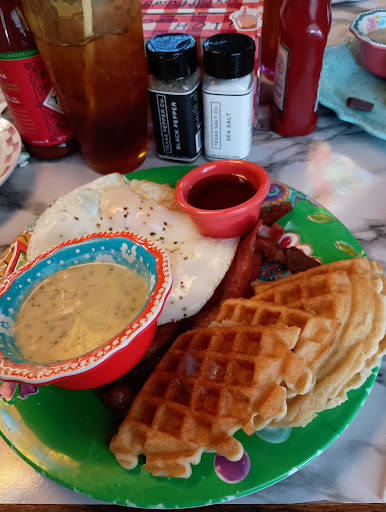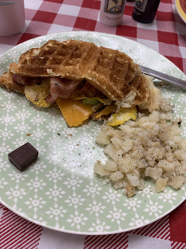 Read moreI really wanted to give a better rating because the lady serving us was such a sweet person. Additionally we read all the wonderful reviews about this place. Arrived before 10am on a Sunday, many open seating options after you order from a board on the wall (awkward and wasn’t expecting to make a decision on the spot being our first visit). Without explanation nor acknowledgement we sat for over 30 min before our food came out without silverware but that was ok because it was already cold when the plate was sat in front of me. I ordered a waffle sandwich....it was a cold soft waffle on top and a soggy warm bottom with undercooked bacon(cold), a hard fried egg (ordered scrambled), a fresh avocado and a cold slice of cheese....garnished with what looked and tasted like frozen potatoes cold of course. My husband had shrimp and grits and other than the temp being slightly cold he said they were quite tasty. We skipped dinner last night and we were so hungry we ate it all. No reason what we ordered should have taken over 30 min. To come out, they did not look busy with other than the two of us, a two top, a four top, and a one top there. Our food was like it had been sitting for 20-30 not even under a hear lamp. So sad because we had such high hopes. Maybe the kitchen suffered no help this morning but still they all acted like this was a busy moment.