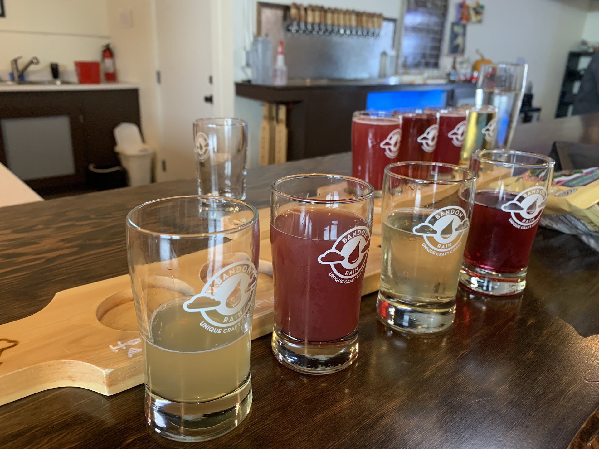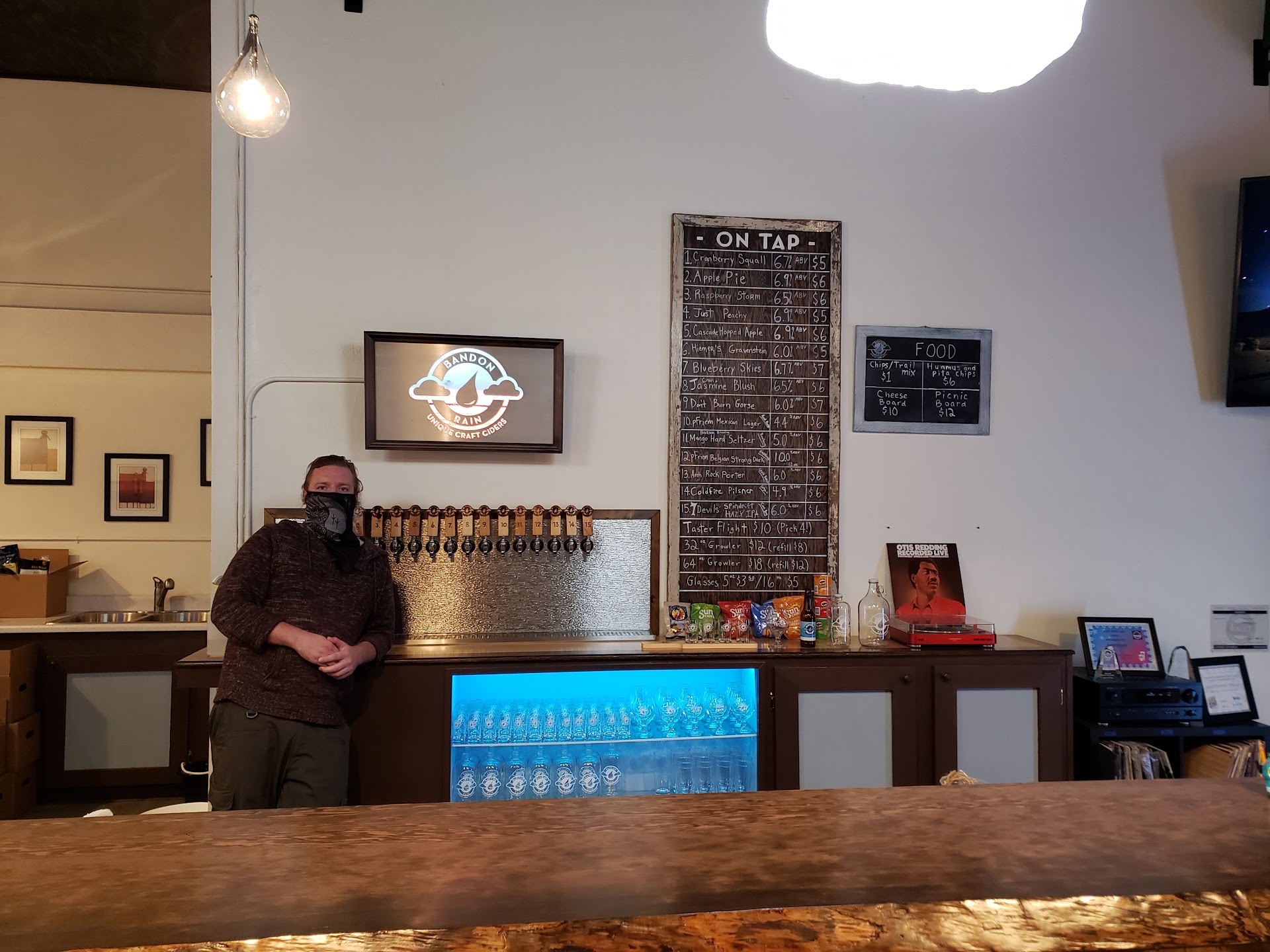 We're locals and find ourselves in Bandon at 7:00 PM with an hour to kill, our options are limited... There are a few bars and a few restaurants, but nothing stands out in my mind as an obvious choice... Then I remember the Bandon Rain Taproom that opened... GOOD CHOICE! This isn't just a bar, these guys are actually selling their own product!
