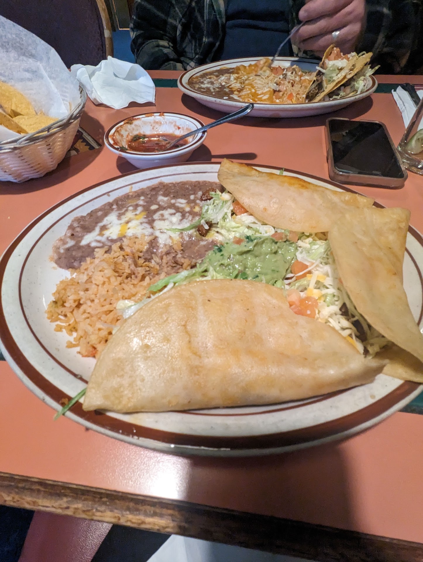 This home town Mexican restaurant is a good place to eat, I've read the neg reviews on this restaurant on other review sites and it's just opinions and not fact. This restaurant is a family run place, the owners make wonderful tasting dinners, our favorite dishes are the Carne Asada Burrito dinner plate Pollo con cream dinner special plate Two cheese enchaladas dinner plate Side order of refried beans and cheese (for dipping all the yummy homemade corn tortillas chips in! 😁) Don't listen to the picky reviews this place is delicious you get free chips and salsa they do take out and if you read a bad review on the waiter or waitresses it's only bc there's only 3 ppl working all the time if they seem tired or not talkative enough it's bc they're hard working...