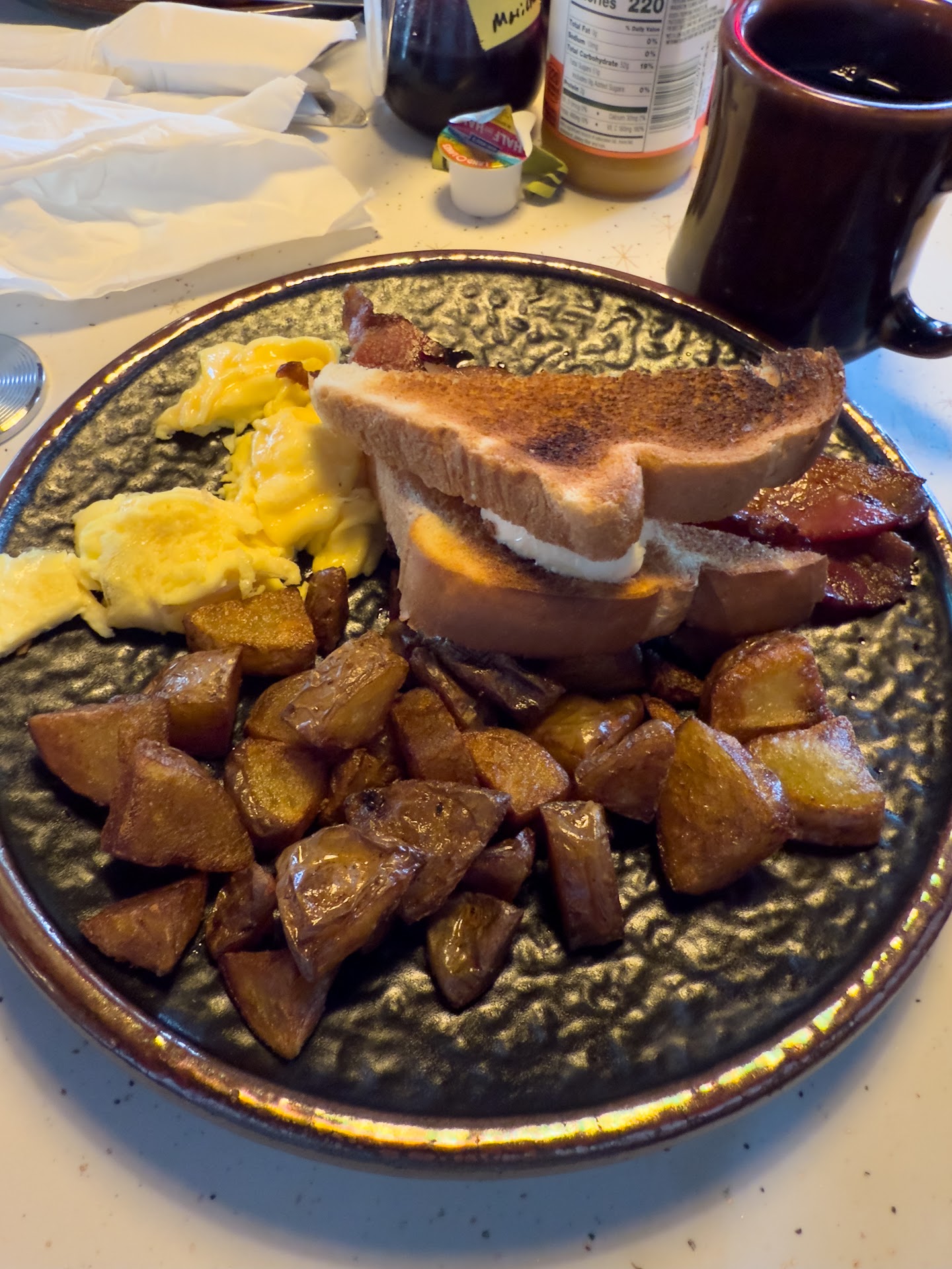 We left this restraunt feeling very confused and disappointed. My family came in for lunch on a Sunday. When we first walked in, it was still busy, but apparently they were closing soon. We were not denied service and welcomed in so we waited in line for our turn as it is counter service. Everyone in line in front of us ended up leaving to find somewhere else to eat. While we were waiting we were trying to find a menu to figure out what we'd like to order before we reached the counter. Behind us, next to the front door, was a menu cubby with one inside which we looked over to order from. Upon reaching the front we were told that it wasn't their menu but one they keep on hand for the business next door for customers to look at. We were confused by this but were provided with their menu, and to our surprise, the two were basically identical, sharing many of the same dishes and item names. We later were told by the server that the the two businesses shared a kitchen. The kitchen staff for Sunnyside needed to clean up and leave for the Old Town Tap and Grill staff to come in and start their shift. Why couldn't we order from that menu? I don't know. They both made the same stuff. Unfortunately, the only thing any of us were allowed to order was a basic chicken sandwich because we were denied all other requests and told they were out of basically everything or had stopped serving certain menu items. We probably should have left, but we were hungry and hadn't eaten that day. The server recommended their Bloody Mary cocktail and my brother in law ordered one. My in laws wanted coffee and we were pointed to a self serve coffee dispenser and told to help ourselves. Unfortunately, they were out of coffee too. Just water then, I guess. The wait was unbearably long and the entire time, we could hear the kitchen staff yelling at eachother, complaining about the customers, and even making fun of them. Like they didn't care we could hear them. By this point all other customers had left and we were the only family there. No one checked on us. When the server finally came by to clean the other tables, my brother in law had to remind her he had ordered a Bloody Mary. She said she would prepare it herself. It still took way too long to get his drink. She had to be reminded at least twice for it. Eventually, we all got our sandwiches, which weren't bad but generally disappointing to all of us. The server was polite enough even if she had to come back to ask for reminders on what our orders were a lot. She was able to direct us to some shops we wanted to see and because the experience had been so bad she also was kind enough to comp 1 of my brother in law's drinks. He liked the Bloody Mary and had gotten a refill. This did nothing to improve the bill. Overall, unfortunately, the experience was a nightmare and none of us would go again. And we wouldn't recommend it to anyone else. Also, weekends in Bandon are VERY crowded so parking was hard to find. You may end up walking around...