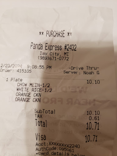 Read moreLast month we orderd 2 plates on of which was the orange chicken but when we got home it was all batter and hardly anyou chicken in addition it was cold so we wrote corporate and they were novice enough to issue us 2 cards for a free plate.