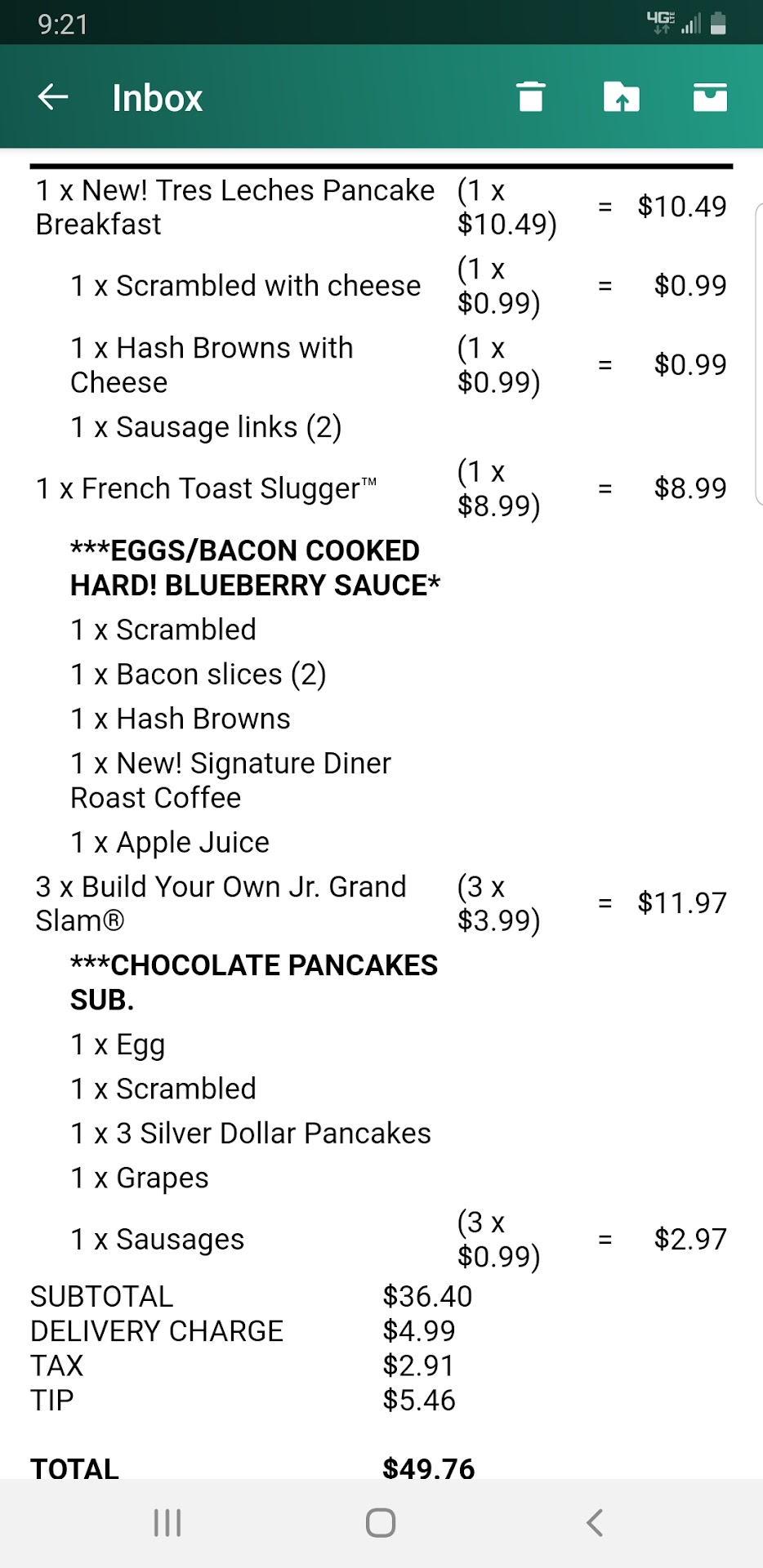 I ordered an omelet which had almost no cheese on it and the egg tasted extremely boring and had more of a scrambled egg texture. My French toast came SMOTHERED in salty butter. It was so covered in butter that it was soggy. I personally prefer my French toast to taste like French toast and not salt. So, I ended up only taking a couple of bites of my food. My fiance said that his "Nashville Hot Chicken Melt" wasn't bad. (Although he ended up with an extremely upset stomach later that afternoon. Needless to say, we spent our evening at home lol.)