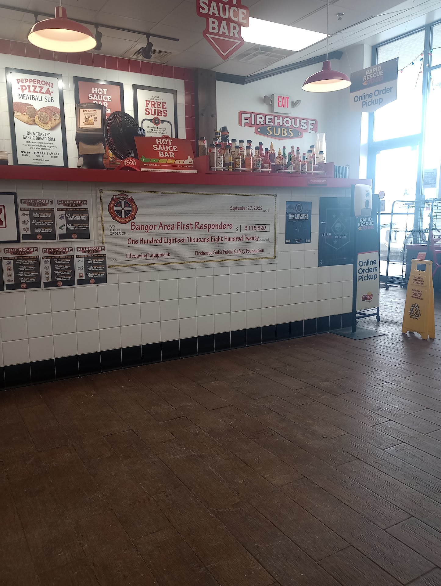Ā Ā Ā Read moreI really enjoy Fire house subs, I went in and ordered a Lg Italian - there was one person in line ahead of me. I was on a hr lunch brake and went straight over to order there - I kept an eye on the time and waited... after I ordered my one sub - I stepped aside and waited - 27 minutes- the crew was not organized and door dash had them in the weeds - where walk ins had to wait 30- minutes plus for a sub. I asked what my ETA was - lady had to find my ticket said another 10 minutes- yeah no i was not waiting 37 minutes for one sub- I got a refund and walked out - politely- went to hanaford instead bought lunch there. I donāt dare do door dash again from here - because I ordered once with co workers from there Bangor location and my md meatball sub had a piece of reddish hair in it. So unfortunately - I just chucked my sub - then decided to give this location another shot, two months later. I would not recommend coming here on a hr lunch break unless you call your sub in a hour before hand. When I got back to office and told my co workers - they shared similar experiences- wait is always ways to long there - sorry - older gentleman with glasses he seemed to only know what was going on - He tentatively try to expedite the line but unfortunately the crewmembers were just way to much...