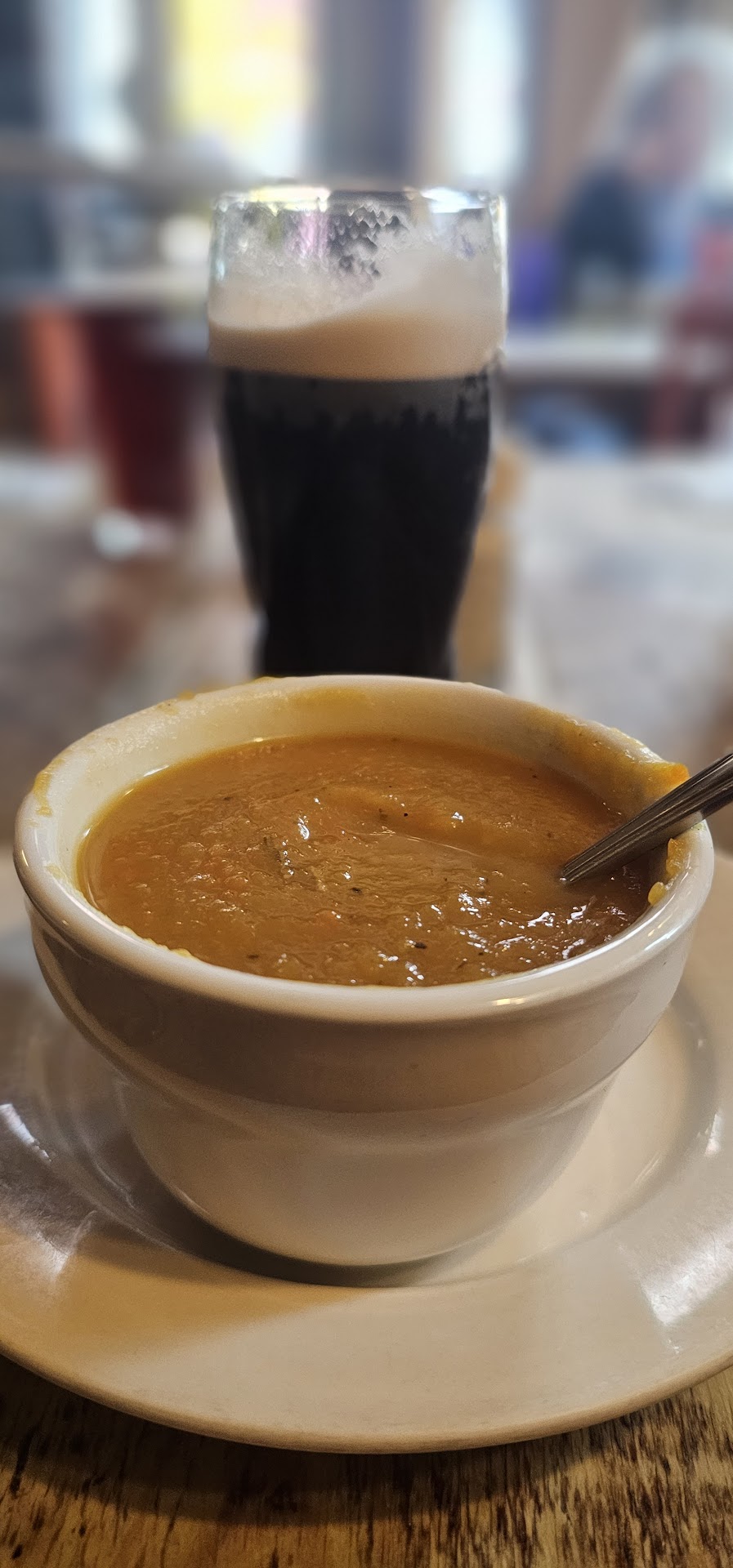 Later, she came back to tell us the kitchen had tasted the soup and agreed; something was off. My wife’s entrée (a take on shepherd’s pie) and my burger (the Celtic Warrior, if memory serves) were both excellent; comforting, flavorful, and well-prepared. To top it off, our server not only took the soup off the bill, she even gave us a to-go bowl of the Hungarian mushroom.