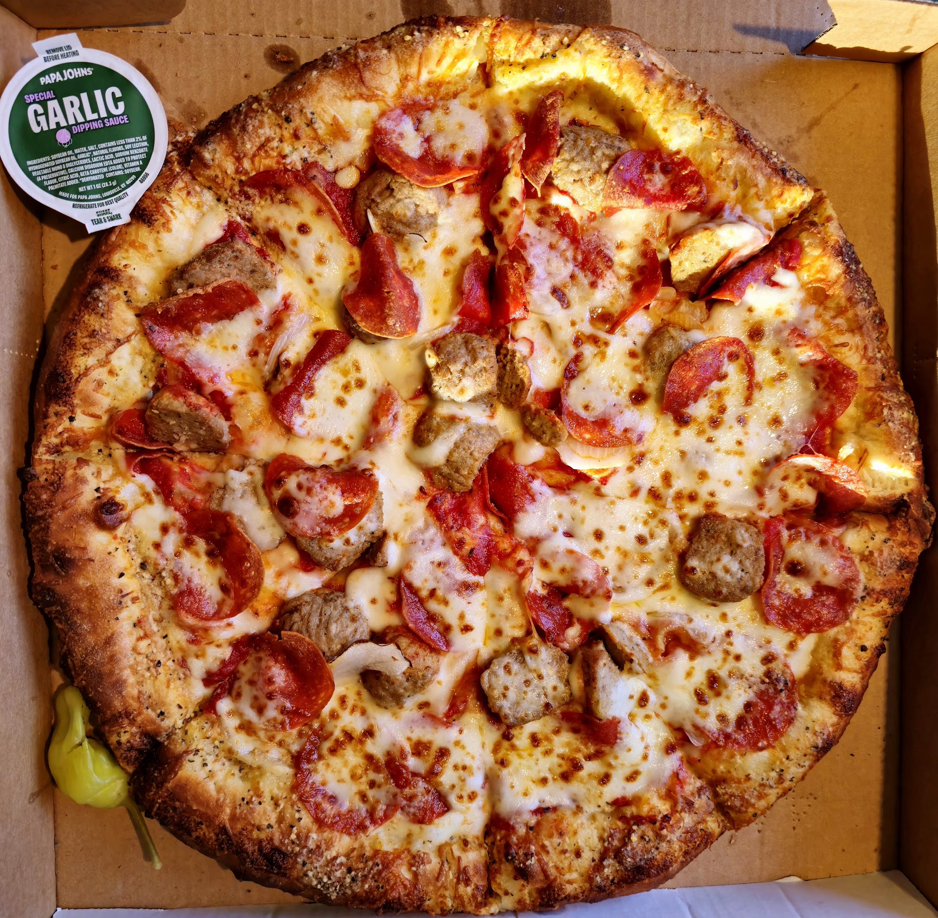 Read moreAt least I got my pizza. I guess that's a plus. As soon as I paid the website said 69-79 minutes. I thought "wow". Then about 10 minutes later it texted that my pizza was on its way. 🤔 about 25 minutes after that it actually arrived. Timing not bad... but definitely confusing. I requested contactless delivery & even specified NOT to ring the doorbell cause my dogs will go crazy. The first thing he does is ring the doorbell & dogs go crazy 🙄. Instead of contactless (6 feet away & sets pizza on something so as not to be touching ground as per their website description), he is standing there right in front of me to hand me my pizza. The box looked crushed but my dogs were going crazy so I said thank you & took it inside. When I opened it the pizza was stuck to the lid (hence the crushed box) . Then the crust fell to the bottom & all the toppings remained stuck to the lid. I did what I could to repair it but it was more of a clumpy inconsistent mess at that point. It really wasn't very good. I also ordered the jalapeño poppers. They looked dried out & there was an obscene amount of flour on the dough so they too didn't taste very good. Needless to say I will not be ordering from there again. I thought there would be more consistency between locations but this was an epic fail & I'll just choose a different pizza restaurant...
