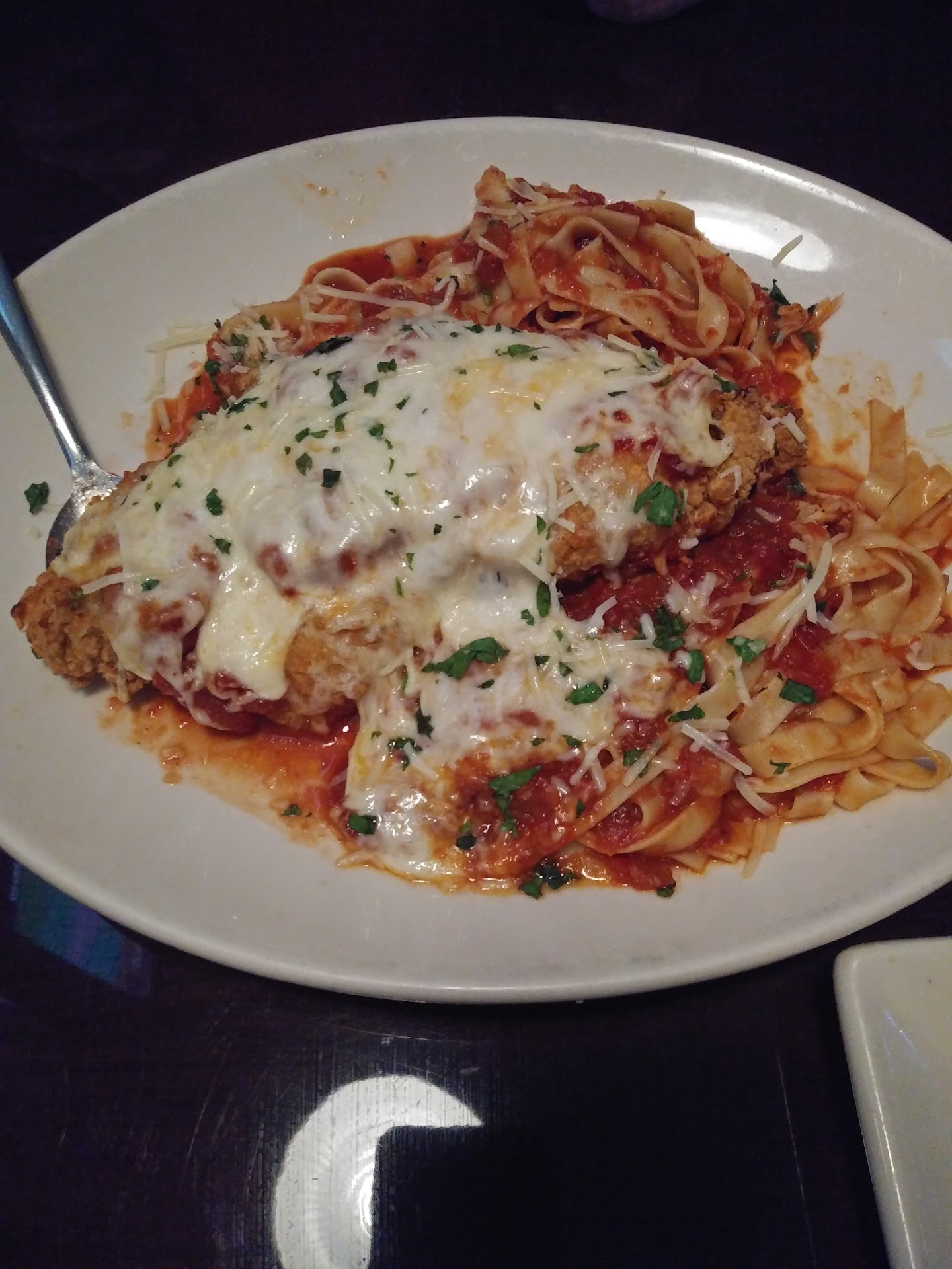 The "Blackened chicken alfredo" says that it's served with linguine. In reality, it's served with mushy, overcooked penne and the "blackened chicken" is burned. I get it, blackened is blackened... This chicken is just burned on purpose. There is a difference and this tastes like flavorless little chunks of charcoal. The chicken wasn't even all that dry, but it was so flavorless other than the strong charcoal flavor from being literally burnt.