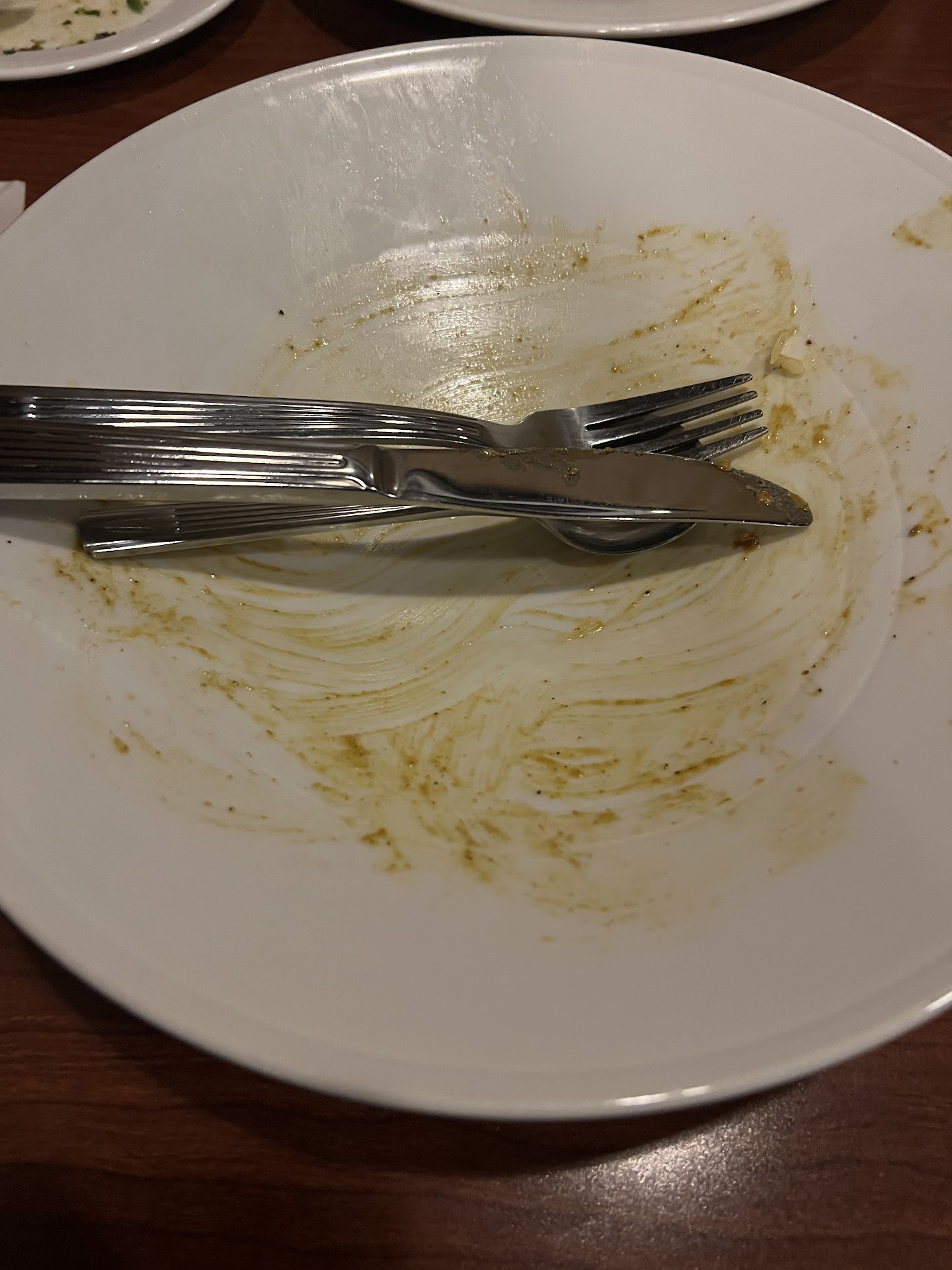 So the order: A salad was brought out. It was a garden salad. It only loses points based on the courtons having this dry crumbly look....it was a salad. Nothing lost nor nothing gained.