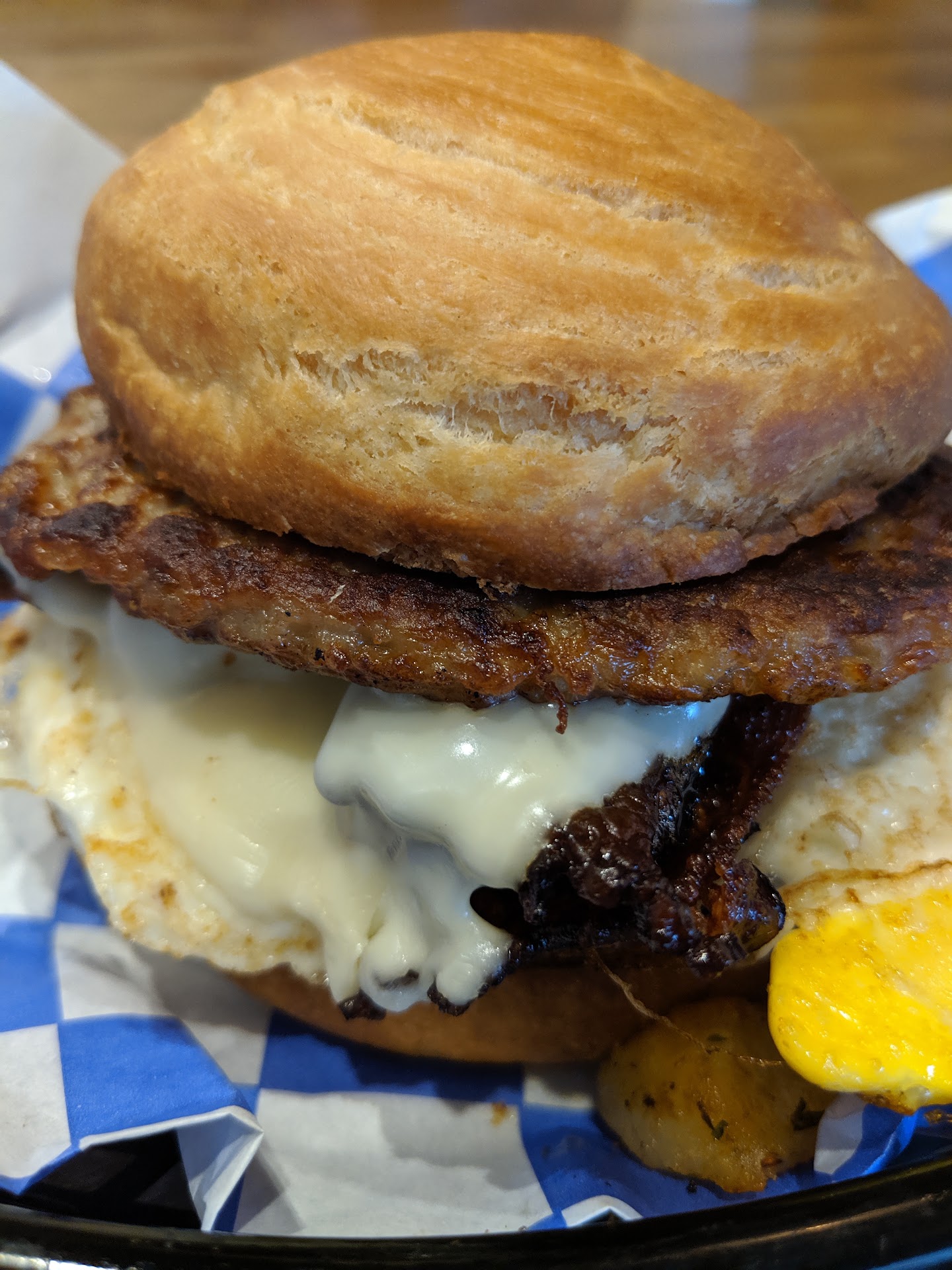 Underwhelming for $$$ ..Stopped in around 9:30 am this morning to try out their Vegan breakfast sandwich ( sausage egg and cheese). We were told they were out of egg , but they could make us sausage and cheese. We ordered, total was a few cents under $20 ( for 2 sausage and cheese sandwiches only). The cook arrived to the kitchen a few mins after we sat down I watched her pull our ticket ..the only ticket there was ours. We waited and we waited watching other people come in order and get their food. Then they finally brought out 2 paper boxes w our sandwiches ..I didnt order to go...but I was hungry and still excited to see what a $10 sausage and cheese sandwich looked like :)...I was taken aback when I opened the box at my table. My sandwich consisted of a small black charred hamburger bun, a paper thin piece of sausage meat, with a generous amount of beautiful melted cheese...with a strange spicy mayo sweet relish type sauce (a quarter size hidden underneath in the very center) ...I was a few bites in before I hit it...I didnt care for the sauce, although my companion thought it elevated the sad looking sandwich to burger level...I was looking for a breakfast sandwich. I was so impressed with the cheese that I had to give the cheese a star. I wish my experience had been 5 star worthy. I had such high hopes for this place, the breakfast sandwich looked amazing online.