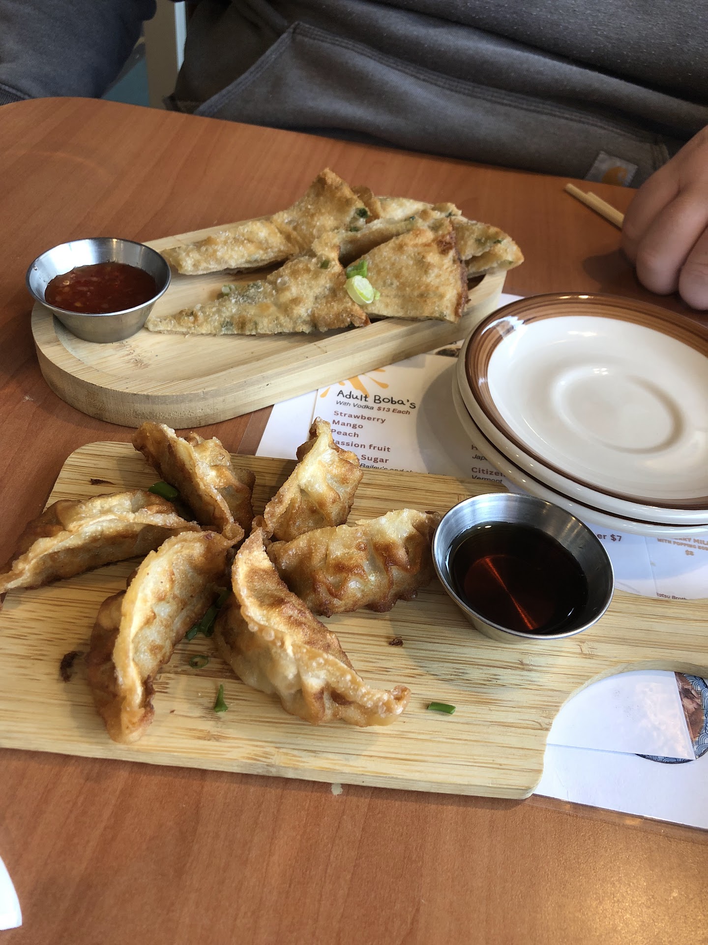 We ordered between the two of us Scallion Pancakes, Gyoza, Drinks (I a Boba, and my Partner a Soft Drink) and made a Build your own Bowl Ramen. Our total was 77$ after tax.