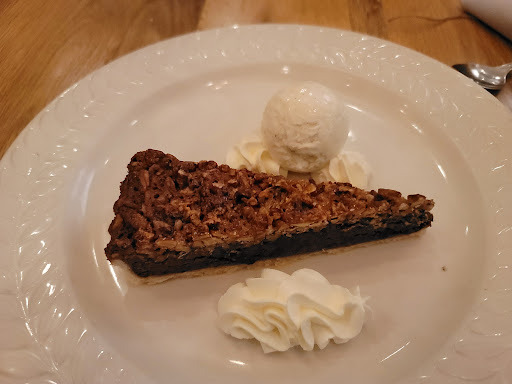 Read moreI would describe this place as pretendcious. Thats not a misspelling. In order to be pretentious you need some idea of what you are trying to be. They seem to be attempting to be a fine dining restaurant but fall ludicrously short of the mark. To begin we were there in February with 8 inches of snow on the ground and the front door was left open the whole time. IT WAS 18 DEGREES OUTSIDE! I believe this was supposed to be about coronavirus prevention, maybe because unlike most restaurants they have the tables very close together...no social distancing. They didn't even have a heater in the doorway, people were eating while wearing outdoor coats. The food was so so, the waitstaff indifferent. Was told no substitutions when I wanted cream corn instead of brussel sprouts. They offered to sell me other sides at $8 a pop. The silverware was wrapped in paper napkins. The tables are small the plates large so we were juggling dishes moving things from one plate to another. We had the shrimp and grits appetizer the shrimp were a bit tough but the grits were good and the sauce was excellent. I asked for bread and they kindly sold me a small loaf of mediocre bread for $6 but took so long to serve it that the sauce from the dish was ice cold by the time I got it and was served with an olive tapenade which would be great if you like olives, but I don't and there was no butter. The entree was served before we finished the appetizer and more dish shuffling occurred. The short rib was ok not great. I asked for salt and pepper they served them together on a small flat dish with a debutante spoon you couldn't get the salt or pepper on the spoon Ihad to sort of push it off the side onto the food. I had the pecan and choclate pie for dessert served with a small spoon, the pie had a hard crust of pecans over a soft center of chocolate and a hard bottom. The spoon had great difficulty getting through the top crust and the chocolate squirted out the side, it was a mess. In addition the served my wifes drink over ice instead of in a martini glass as it should have been. All in all with a bill of $129 for 2 people it wasn't the most expensive meal I've ever had by far but for the price I have never had such a miserable experience. My advice...