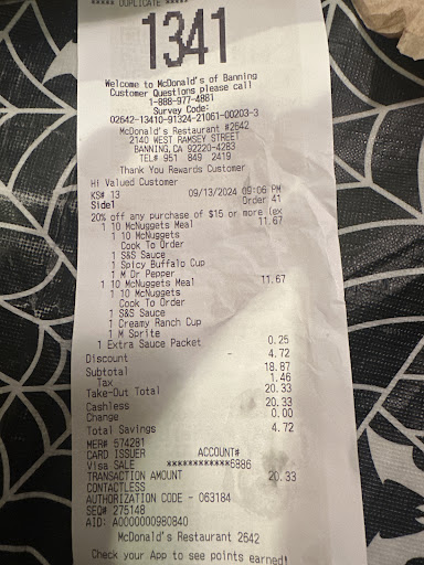 Read moreThis place is either good or completely horrible.. Always having to wait for food that isn’t even fresh 80% of the time and after waiting 20+ minutes to the side the car that pulls up next gets their food at the same time as us.. In the bag, no Ketchup but this time we had napkins when we don’t half the time, the sad thing is we only eat here maybe 3x a month and this is almost always the same type of thing we deal with. This place is lucky most of the guests are from the freeway and will never return to complain. In total for this 30+ minutes of waiting we only ordered two McMuffins and four hash browns. I manage a food venue that sees 2000+ guets per day and is NOT fast food and we still have faster and definitely friendlier service than this place.