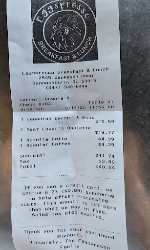 When presented with the bill, the waiter did not mention the issues we raised with the waitress. To me, this is unacceptable customer service and we are probably going to have to replace Eggsperience as our go to...
