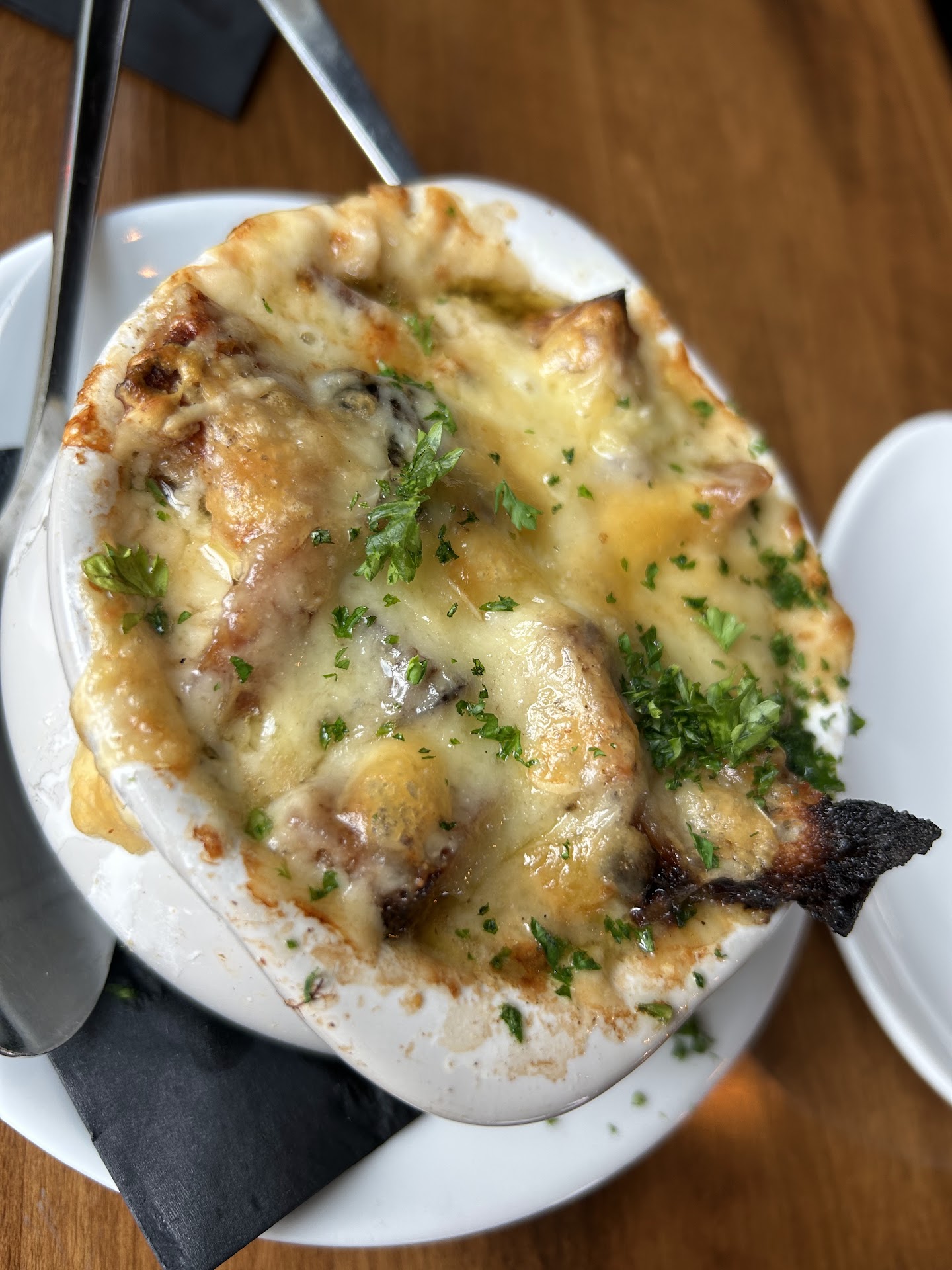 Read moreLiterally, one of the best places I have ever eaten at in my entire life! Mind you, I am a world traveler. We ordered the French onion soup, and the shrimp appetizer. For dinner, we ordered the Schnitzel and Bone in pork chop. We also ordered two drinks. A margarita and an old-fashioned. The food was amazing, the atmosphere was very cozy and intimate. I loved the old music that was playing in the restaurant and our waitress Debbie was great! She was super knowledgeable on the menu and had a great sense of humor. When it comes to the food, the French onion soup was so tasty! The croutons were cooked to perfection and the cheese on top was melted so it would just string from the bowl to the spoon. The shrimp and crostini were in a delicious cream sauce and the shrimps were a decent size. The schnitzel was served on top of mashed potatoes, and glazed carrots. The schnitzel was crusted perfectly and pounded out not too thin. The bone in pork chop was served on top of butternut squash risotto and apple cider sautéed onions and glazed carrots. I highly recommend making a reservations. We were fortunate enough to walk in when they first opened so the bar was first come first serve. There were no tables open unless you had a...
