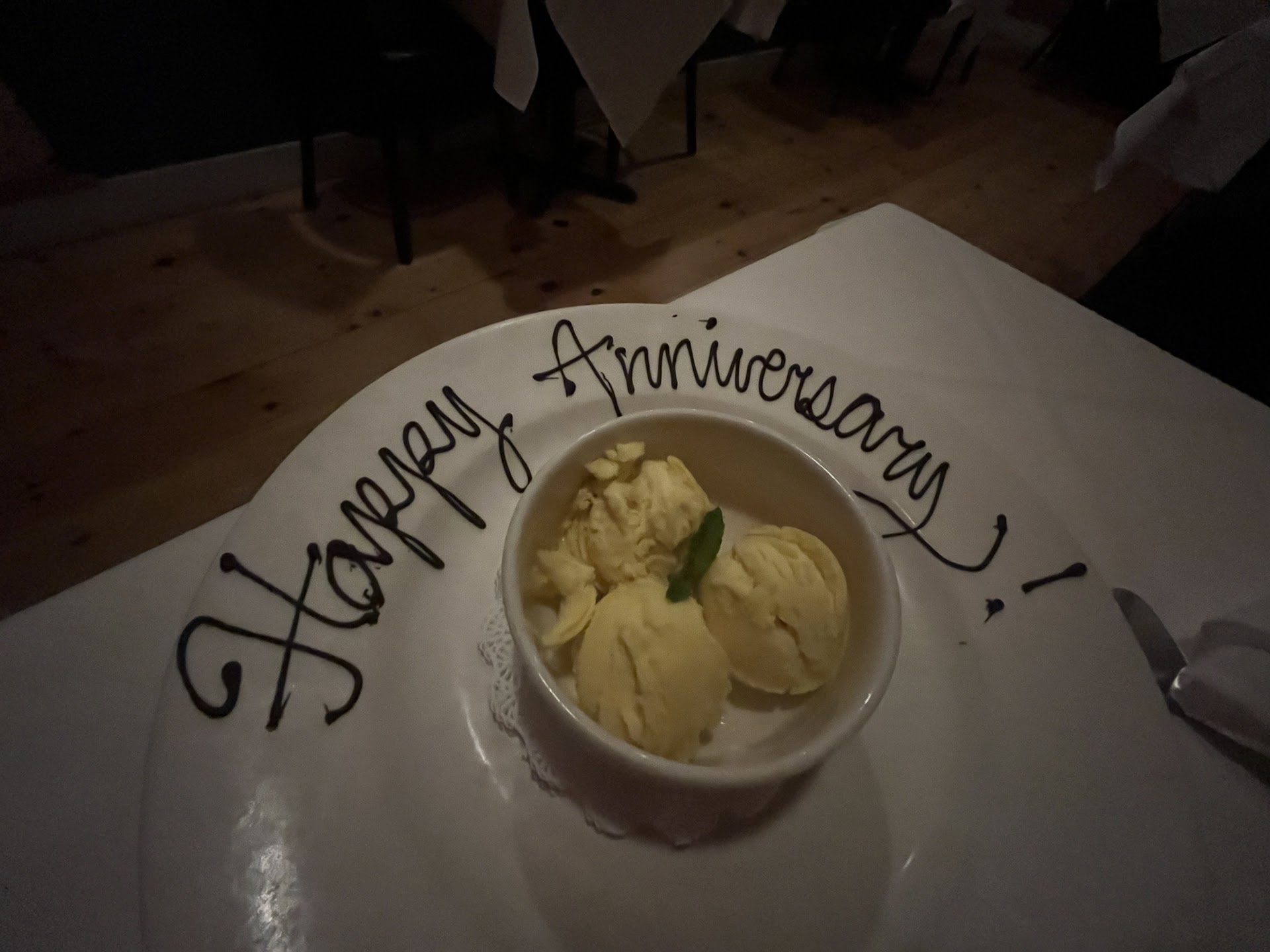 Our table was in a lovely front corner of the restaurant, and they included a card from the whole staff congratulating us on our honeymoon!!!