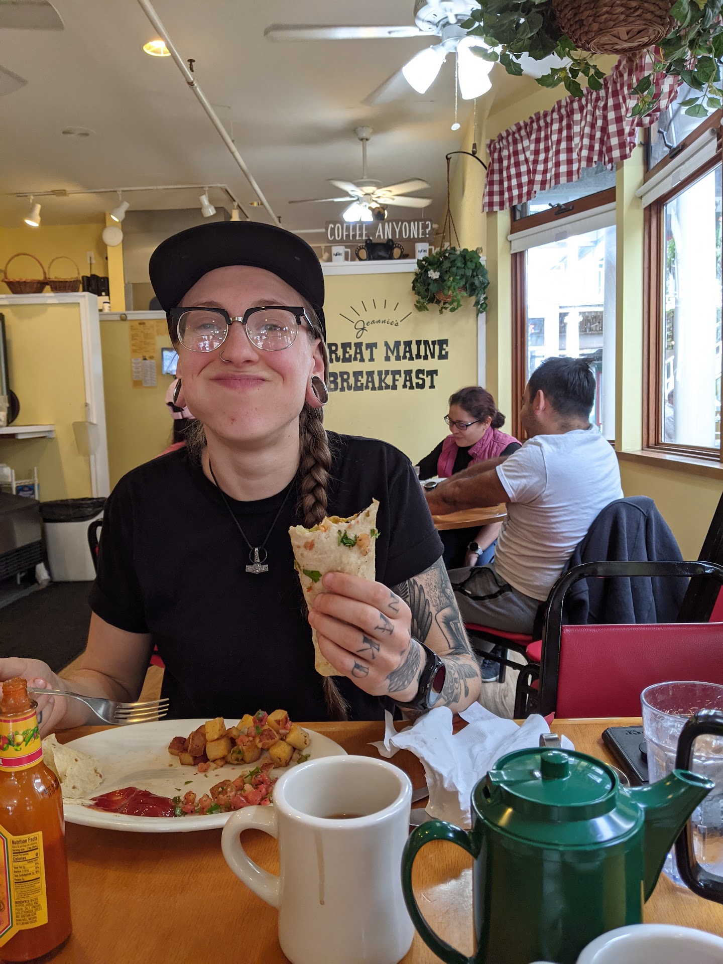 Read moreThe food was good and the prices were fair. Our waitress and the hostess were extremely nice. I'm just left with an uncomfortable feeling after witnessing the way another waitress spoke to customers waiting at the front for a table. The restaurant itself is small, with very little room for those waiting for a table. It's the end of the season and quite cold this morning, so more people were trying to wait inside instead of out on the sidewalk. A pair of customers were looking at something on a cell phone. Granted, the menus carry a declaration that the restaurant is "cell phone free." However, these waiting customers wouldn't know that and were clearly just trying to pass the time while they waited for a table... where they would ultimately be paying for their food... which I would think should afford them a little respect or even just politeness from the wait staff. Instead: A waitress in quite a hurry with a pot of coffee in her hand was aiming to get behind the waiting customers to a table squeezed up front by the window. Without simply saying "excuse me" first, she huffed and loudly said "guys, can you go outside with your cell phones or at least be cognizant of what's going on?!" And shook her head at them. Plenty of the rest of us heard, the waiting customers must have been embarrassed, and it was just uncomfortable all the way around. I'm just not sure why this waitress thinks it's okay to speak to anyone, let alone paying customers this way. It was awkward enough that I wouldn't eat there again, even though it didn't...
