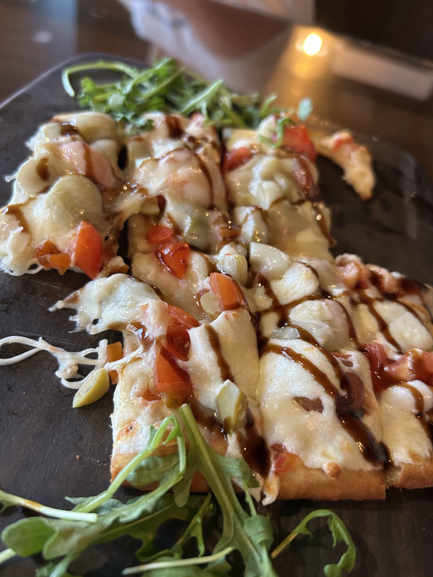 Our server, Emily, was warm, friendly, and genuinely accommodating from start to finish. We started with the Mediterranean Muse flatbread, which was beautifully presented (see photo) and packed with flavor - tangy, cheesy, and fresh with a drizzle of balsamic. Our entrées were equally impressive. The Tuscan Garden Salad was crisp and well-balanced, while the Pasta Primavera was vibrant and flavorful, with the kind of freshness that makes you pause between bites to appreciate the ingredients.