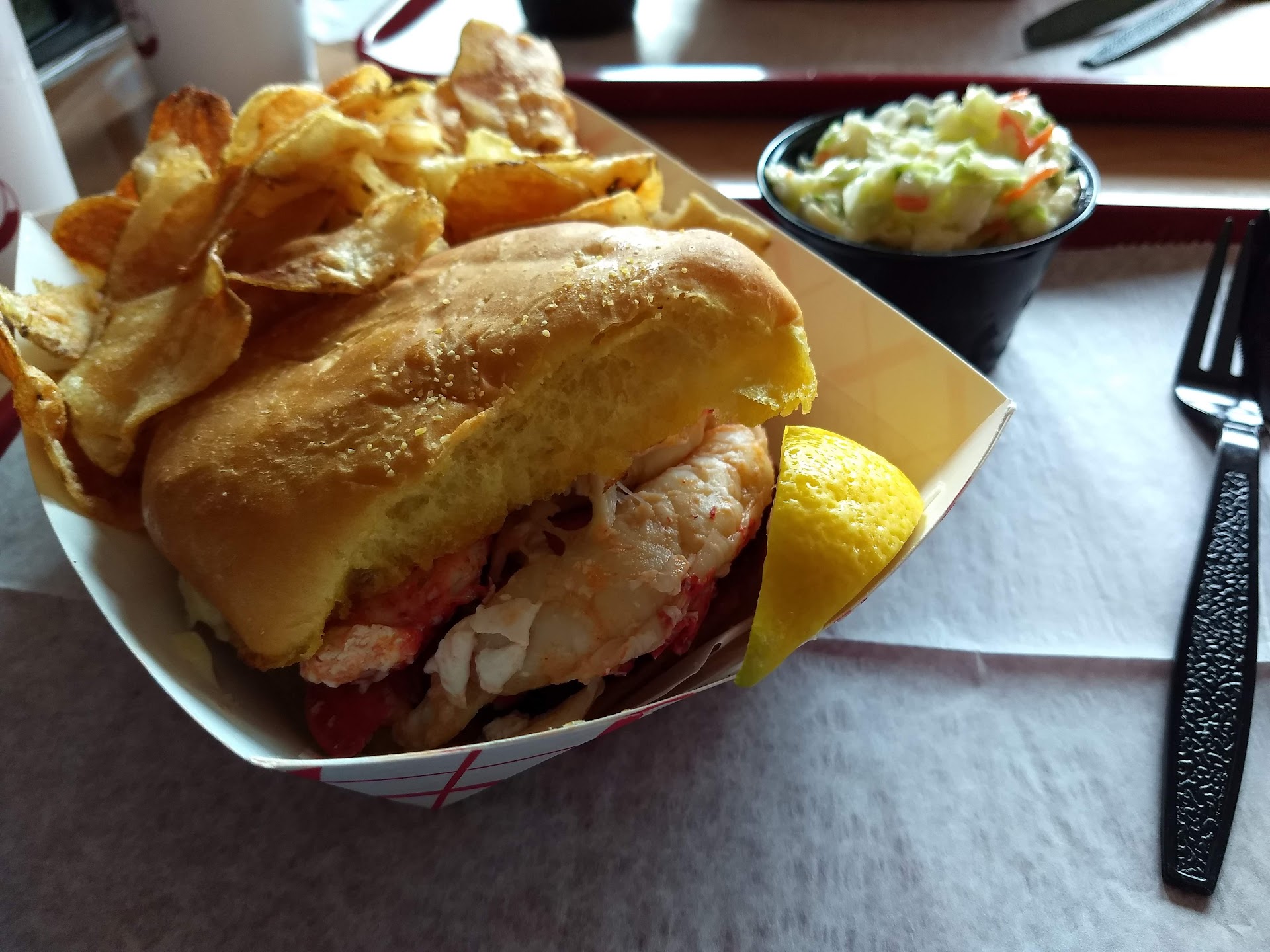 The lobster roll is a lobster sandwich. DON'T LET THAT THROW YOU! Everywhere does a lobby roll in Bar Harbor. The city council might as well hand one to you as you drive over the bridge. The Stadium throws a curve by picking a whole lobster, butter poaching it, and puts it warm on a griddled potato bun with a smear of mayo and drizzle of lemon. It is decadent, filling, and wonderful. A pile of air fried chips and side of slaw provided some perfect texture balance.