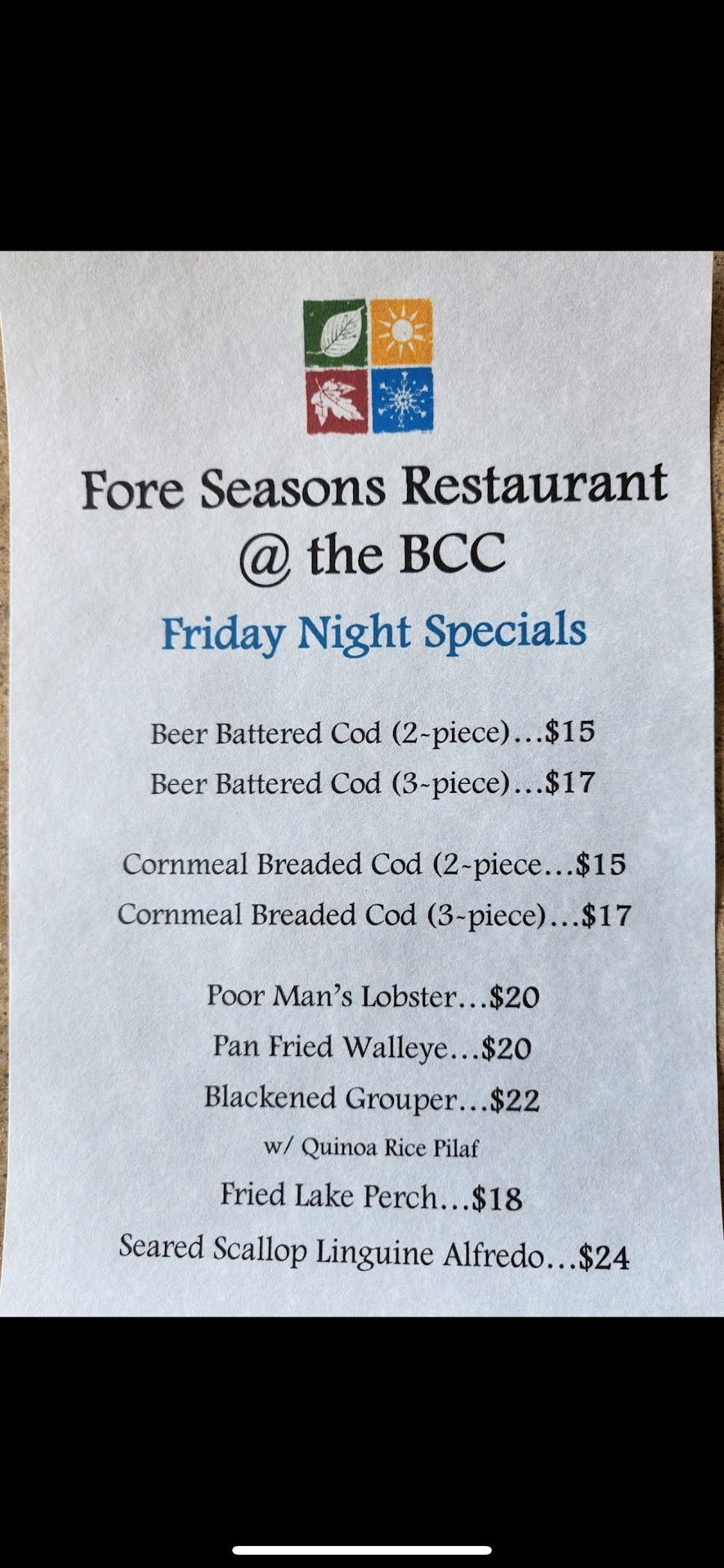 Read moreNew management and wow what a treat! All 3 of us think this is the best in town (or maybe the whole county) now for sure. Simple but fresh salad bar including 3 or 4 kinds of fresh bread rolls and butter. The beer battered fish was the crunchiest I've ever eaten with nice filets inside. We each had it cooked differently and each was great. I like that I have a choice of potatoes including baked and sweet potato fries. Also a choice of fish as well. Great drinks too and service was wonderfully friendly at the bar and at the table even though they were completely packed. Also white tablecloths and a view over the beautiful golf course adds to the ambience. Make a reservation cause someone in line in front of us didn't have one and were told it would be over an hour wait without one. Probably will come here every Friday, since it is so good at the same price as...