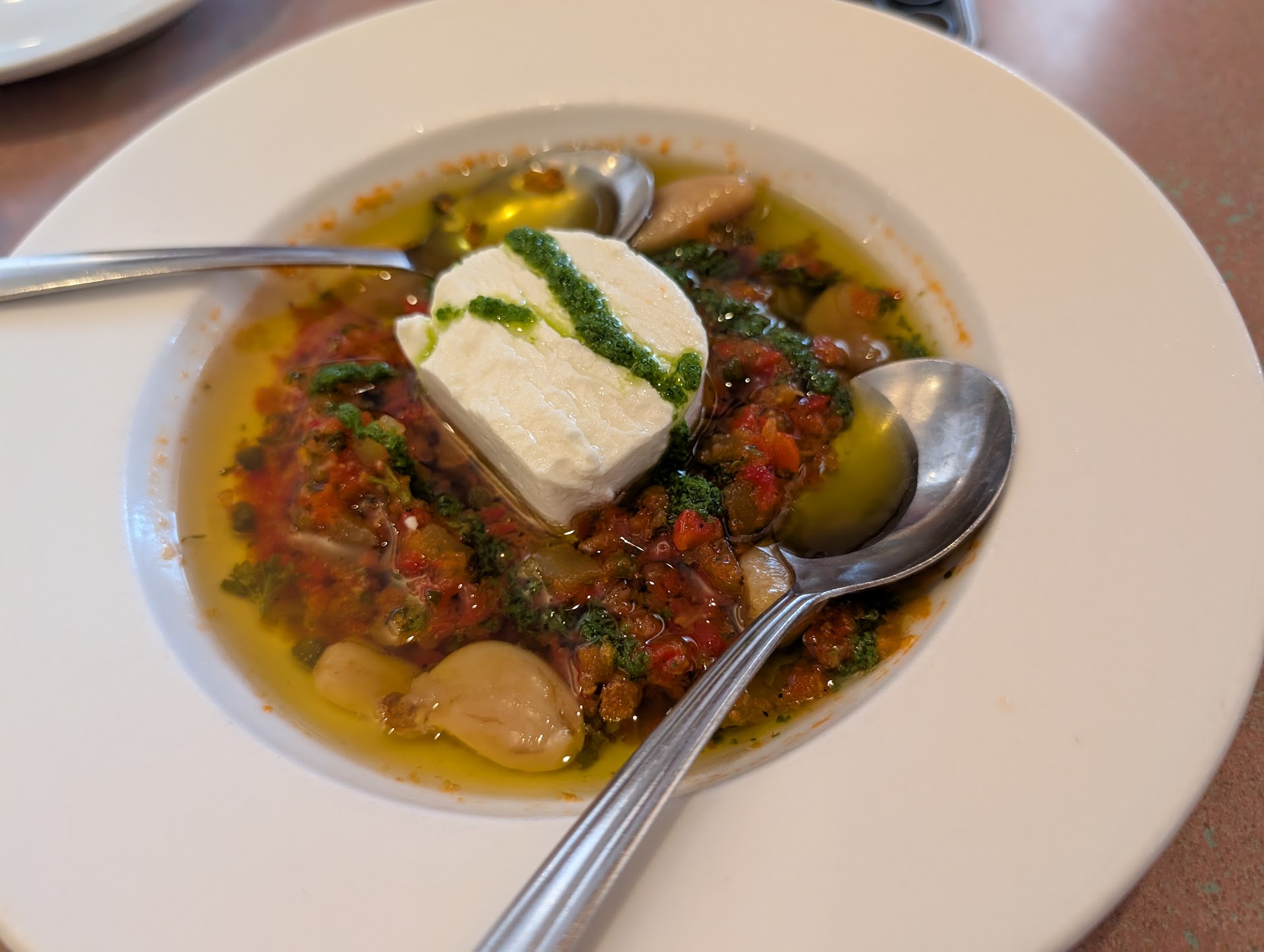 We started off with the roasted red pepper soup, shared with two spoons at the suggestion of our waitress đâ¨ď¸ I'm a creature of habit and rarely like trying new foods at restaurants, but this is a place where I'm excited to try new flavors, and the soup went beyond my expectations. Delicious, decadent, smooth, and umami are just a few of the words to describe the soup.