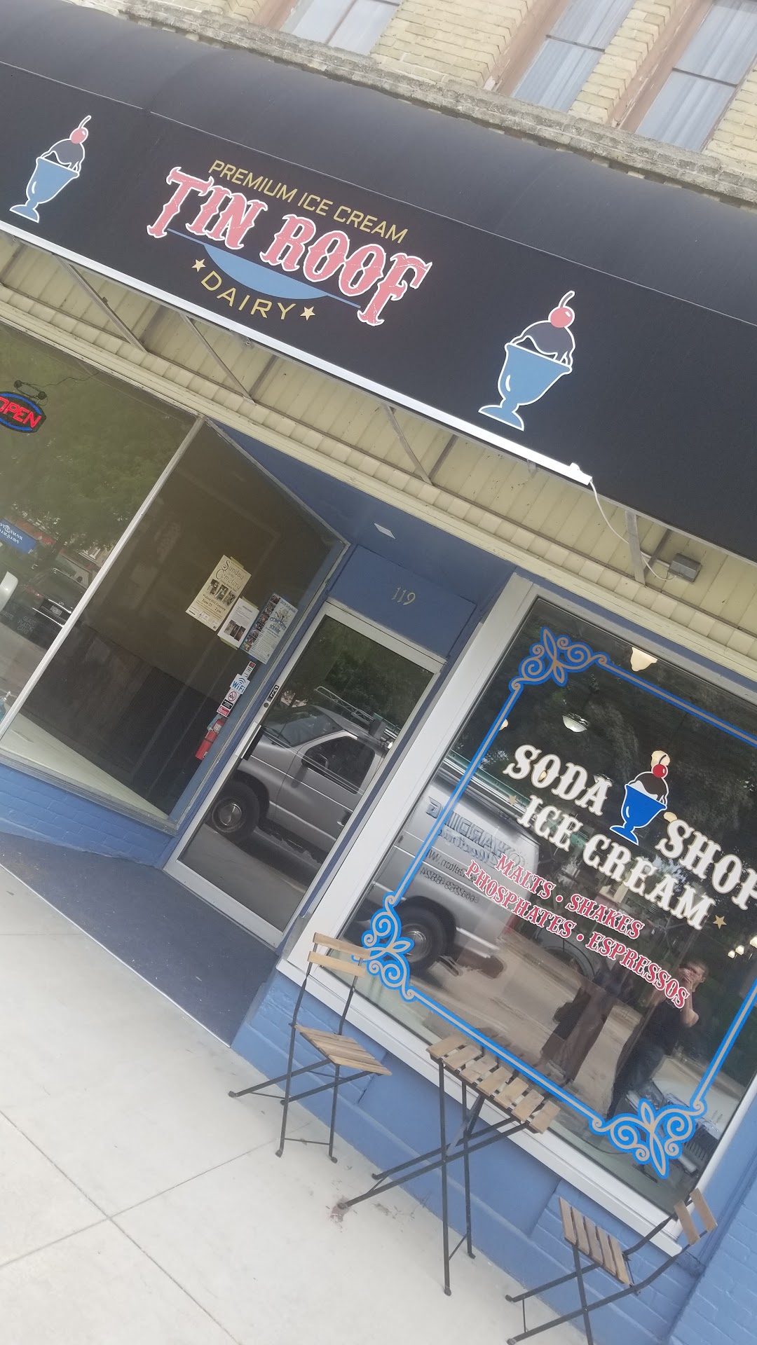 Read moreTreated my little sister to Tin Roof Dairy earlier this week. Never been but was very excited to check it out! Loved their ice cream options and definitely coming back to try their sodas! I was ecstatic when I found out I could order a Blue Moon shake! All the staff were friendly and attentive and made sure we were taken care of even while it was busy. My sister and I thought it was so neat inside and loved reading about the antique bar and soda machine. You can tell the owner, Mike, truly cares about his customers and staff. Definitely recommend going to...