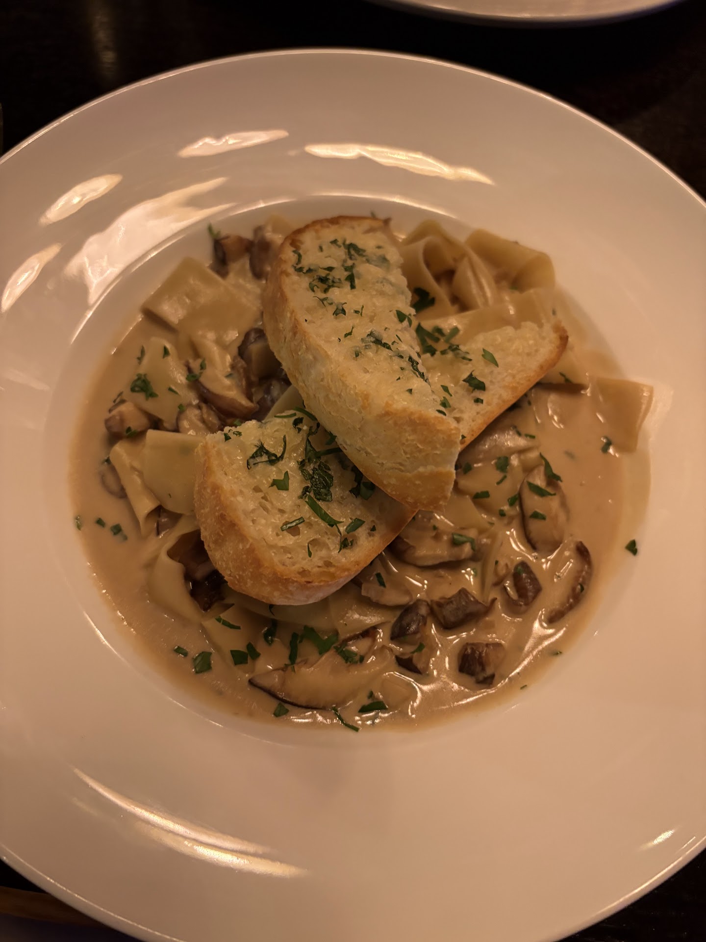 Read moreHard to believe this is the first Google review of this place but it is great. My wife and I went for an anniversary dinner and were treated to a complimentary glass of prosecco to start the evening. We ordered the smoked trout dip as an appetizer and it was great. The only complaint would be that a couple of the crostini were a little thick and we could not bite through them. Looking to the entrees, I ordered the duck breast and my wife ordered the venison ragu. We both loved the dishes. The noodles in the ragu were noticeably fresh and overall the meats were cooked very well. This was my first time eating duck, and I think it was cooked slightly over, but until I have more to rate it against, I don't know for sure. I do know that regardless of it was overcooked or not, it was delicious. The skin was very crispy and it was seasoned well. I tried a bite of the venison ragu and it was super flavorful. The venison was very tender. Definitely a great plate of food and very hearty. The prices seem a little high at first, but once you see the portion sizes and the overall experience that the kitchen is putting on your plate, it is actually quite reasonable. I hope to return soon to try some of the dry aged beef that was tempting me on the menu. Bruno himself talked to us before we left to make sure everything was well and he dropped off a couple of postcards that he will mail out on our behalf to family and friends. This is a welcomed addition to the booming area of downtown Barboursville and I look forward...