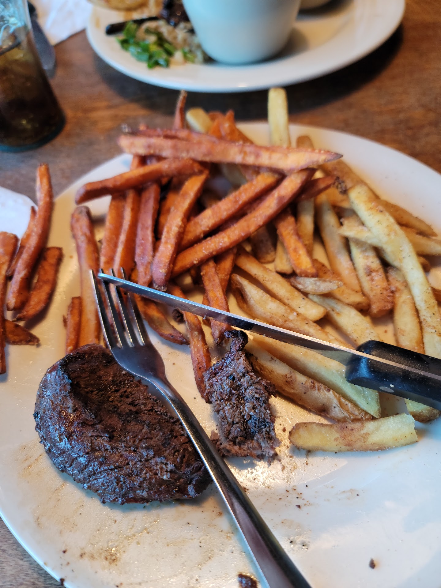 Read moreParty of 2.. One hour after being seated our dinner is finally served.. I ordered a medium rare filet, and received a Luke warm medium well sirloin. At this point I was full of bread and salad. I sent the steak back and asked for the check. I received the check and noticed a random charge for a shot we never ordered or received. Our server apologized and fixed the billing issue. During most of our wait Manager Tony sat with a table of other guests who was seated after us and got their meal way before we did. I brought this to the servers attention hoping she would have a manager come chat with us so we could let him know about our poor experience here. Never happened, so we just paid the bill and left. The place wasn’t packed and there seemed to be plenty of servers, several other tables were seated after us and served before us as well so idk what the issue was. After we left and were heading back to the interstate we noticed 4 or 5 servers/employees hanging out behind the restaurant. Maybe they were on break? Maybe Tony should have been keeping an eye on his staff instead of hanging out at a table for 45 minutes while others were waiting an hour for sub par food and mediocre service.