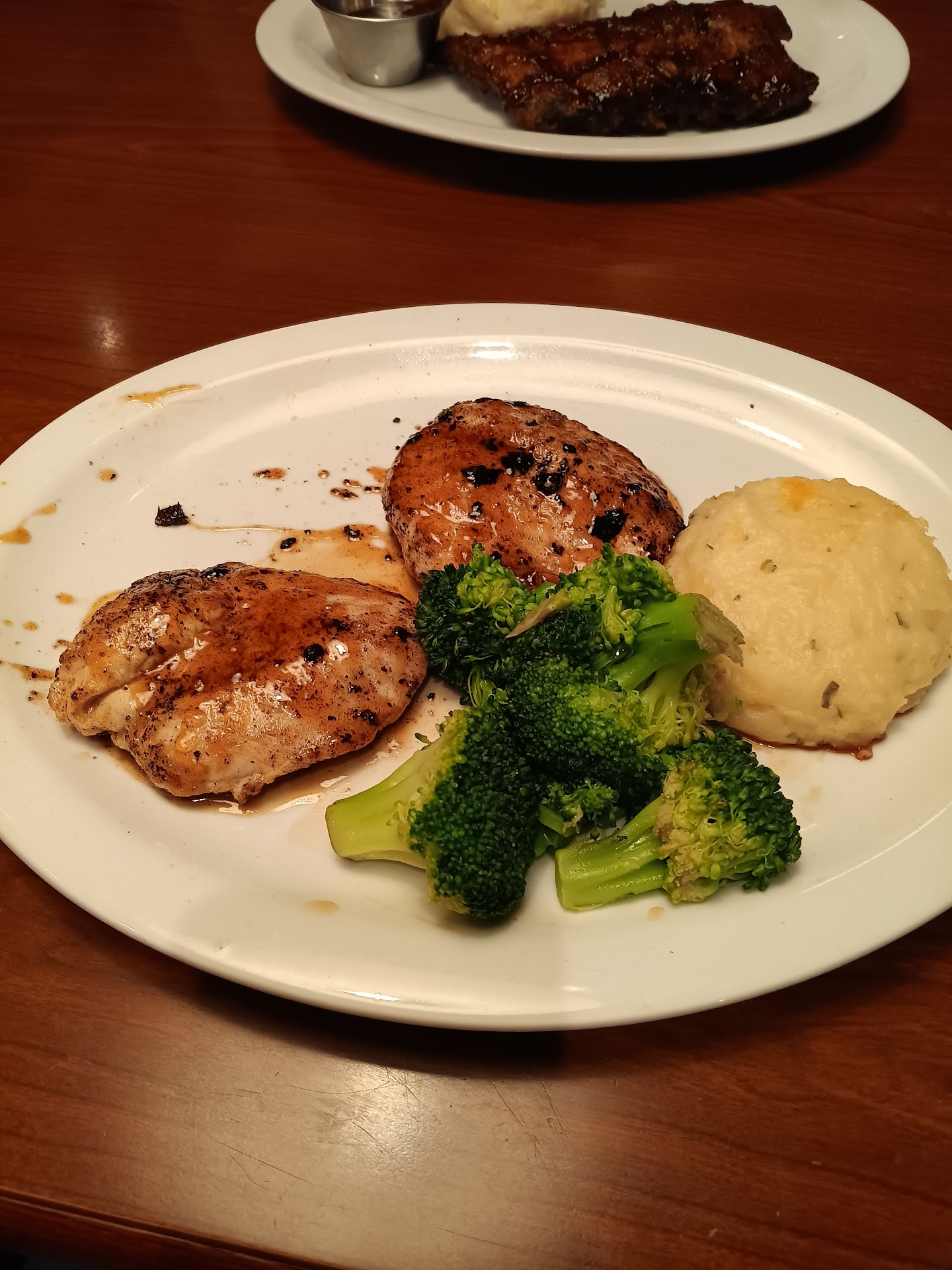Read moreDon't waste your time going here. Two hours of my life gone on food that wasn't worth the wait or the price. We were told there would be a wait of 15-20 minutes before we could be seated. We said that was fine. Almost an hour later we called to ask how much longer on our wait, they told us it shouldn't be long, maybe 10 minutes. Not even five minutes passed before they called us back asking if we still wanted the table. Umm..yes please! I'm thinking someone missed us to be seated. So we got seated, I noticed the table behind us had plates of food where only a Bite or two was missing. I wondered why they hadn't even bothered to take it home. Abyways, we put in a order for an appetizer because by now we were starving. We ordered our food at the same time. The app came out and it was hot and delicious. It was the best part of the whole meal, as it was the only part that came out fast and hot. It was quite a while later, salads had been chomped down, the app had long been demolished, now we were waiting on our main course. And boy did we wait...and wait...and wait some more. The waitress dropped by and said our food was almost done. 10 to 15 minutes later is when our food actually came out. I was so excited to eat by that time. I dug in..to a cold bowl of Mac and cheese. The plate was hot like it had been sitting under a heat lamp but it sure did fail to keep my food hot. Some parts were room temp and others were pretty cold. It was just not good. Her brisket was all fat and also all cold. Baked beans tasted like they had been microwaved from a can. I can't wait to get my food home so I can reheat it and try it hot! However, I will not come back. We were forgotten twice and the food was subpar. Now I know why there were three plates full of food behind us. (Included is a photo of the parm Mac and...