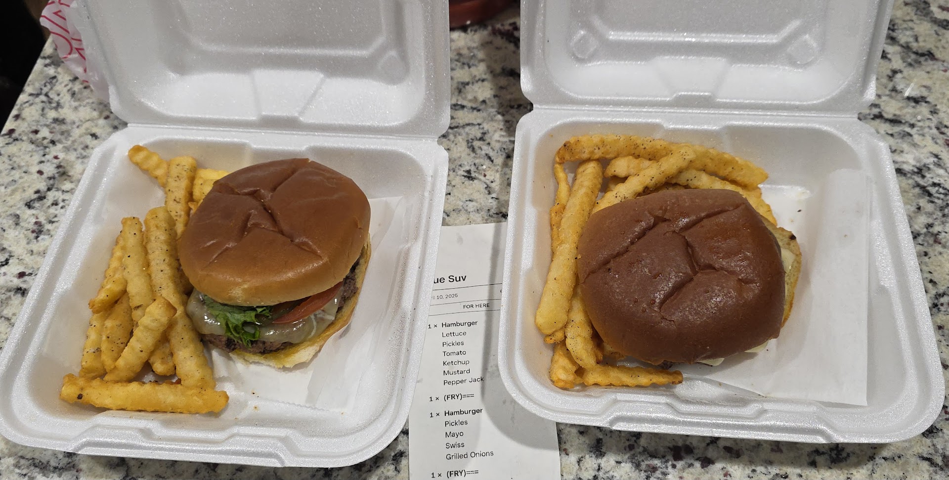 And I guess whenever you order a side of fries with your burger, that means give you no more than 10 fries total per person. They are literally Great Value crinkle cut fries with a little bit of salt, pepper and maybe another seasoning on them. Nothing to call home about.