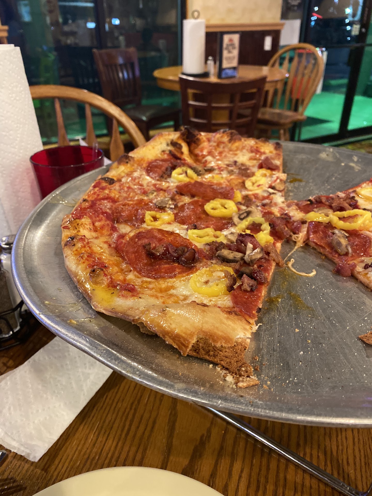 Pros: The food is really Good, flavorful & they do not skimp on the toppings. There is a wide selection of food on their menu for everyones taste. They do book top notch local entertainment which draws fun crowds.