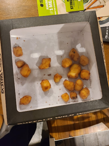Read moreI just got home from my first visit ever to BWW. I had 6 Thai Curry traditional wings , 6 mild traditional wings , French fries and a fountain drink . The place was clean and staff were very nice . I hate when the credit card machines asks you to leave a tip when all they did was take my order . Why would I leave a tip . I should get the tip . I drove there walked to the counter ,ordered my food , brought my food to my table and cleaned up my table and threw away my trash all the cashier that took my order is just stand there. The Thai curry wings weren’t what I was expecting . I was hoping for something like a sweet Thai chili sauce . I recommend that to be added to the menu. I ate a couple of those wings but they just weren’t my thing . The mild wings were good . I would order them again. The fries were covered in pepper but not bad nothing special . Just like any other fast food joint. The biggest reason I gave three stars is that none of the tables had any condiments…. Salt , pepper ketchup and the biggest thing they didn’t have was that they didn’t have any napkin dispensers anywhere. It’s a wing joint how do you expect a customer to eat 12 wings with the 4 napkins you put in my bag. I had to keep asking them for more napkins . But I will try again . I will add a pic. Try to find any napkin dispensers . Makes zero sense for a place that sells mostly wings .