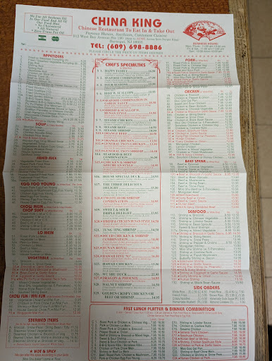 Ā Ā Ā Read moreChina King had been around most of my life in barnegat. As an old lady who has tried other establishments, Ive picked them as my favorite. The owners are so sweet and recognize me when I come in, even when I dye my hair. They have the best brown sauce for their egg foo young dishes, and their chicken rice soup is always comforting and delicious. I tend to go basic on what I order, and stick to the gen tso or sesame chicken, but even when I do venture out and try new things, it's always a delicious experience. I highly recommend ordering from them and making them your...