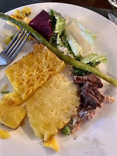 It was really a 1* dinner but I'm hoping it is just temporary and do not want to hurt their reputation. We've always had a great experience and brought many people as well as recommend it but I will not anymore. We were so disappointed. Our waitress did tell us that the usual chef was away so I hope that is it and he comes back. We arrived @ 4:30 The salad bar was sparse compared to the usual. Almost all meats were all dry and chewy - don't know if it was the quality of the meat or the cooking but not what we've experienced here before. I felt terrible for the waste but I'm not going to force myself to swallow meat and is so unappetizing. It wasn't until we filled up on the chicken salad and the garlic bread(brought at the end of our meal) that a med rare filet mignon finally came out and was enjoyable. The butternut bisque was inedible tasted like paste and it's usually my favorite. The pineapple was no where to be found until we were ready to leave and instead of the sweet treat I was anticipating it tasted like a hunk of pineapple with very little sugar was heated in the microwave as opposed to grilled. And I got a mouthful of bitter mango in the mango salad. I should have told this to someone when we were there but everyone was so nice and friendly I didn't want to ruin their night. PS- I was surprised that their were not other reviewer that felt the same and then looked on trip advisor and see many comments that felt the same. I hope this is just a covid thing that they don't have back of the house with qualified people and they are able to get back to what they were for everyone's sake. This was a splurge for me as it was my first time IN a restaurant and I...