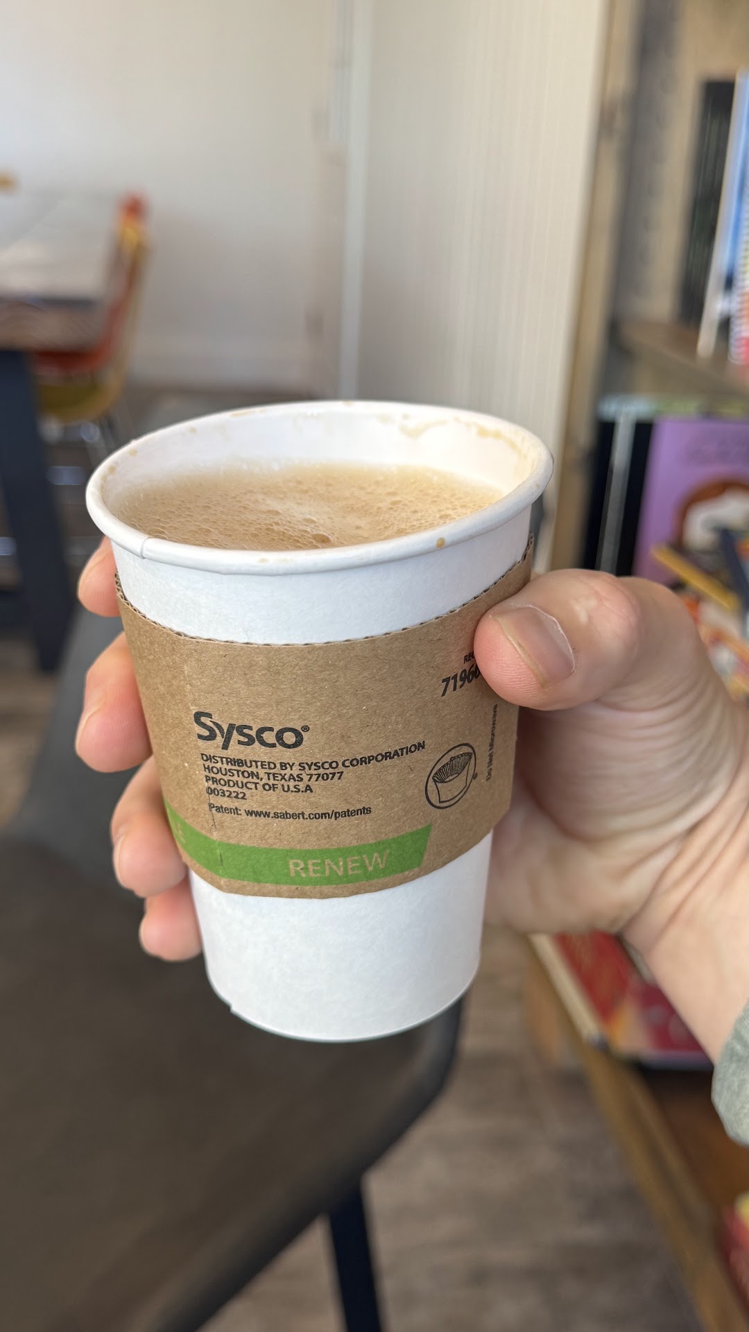 Second day, I ordered a macchiato (see photo) to see if day 1 was a fluke .... and... I could tell by the fact that they were pouring the not-quite-steamed milk into 12oz cup instead of a 4oz cup it was going to be the same issue. I wonder what I would have received had I ordered a latte AND a macchiato AND a cortado ;) ? Now, I will say, if a coffee shop doesn't actually have a cortado and a macchiato listed on their coffee menu, it can be caveat emptor if you order one of the less common-ish espresso drinks; but if it's on the menu, you should know how to make it semi-correctly. Honestly, I think they must have just left the same coffee menu up from the previous owners without really appreciating what the different types of espresso drinks are.