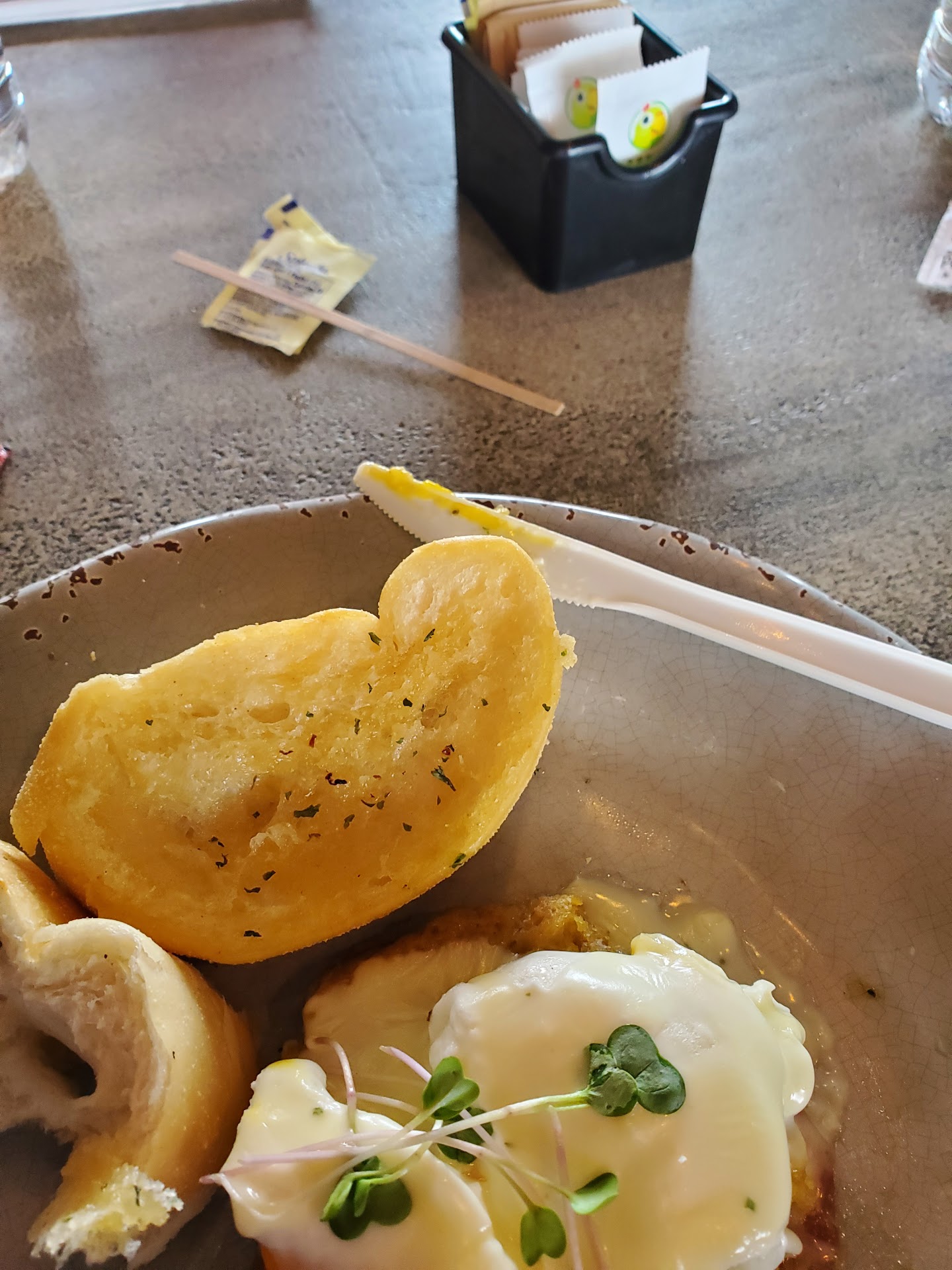 Read moreThe place looks great and as you walk in I was ready for a great breakfast. We had called ahead and made reservations, we got there and they did not have a table ready and had to wait. Once we sat down we ordered 3 mimosas and ordered our food. Four other tables sat down and ordered after us and got there food before we did. My daughter's boyfriend had to ask the waitress for the food so our granddaughter could eat. By this time we had been seated for almost an hour. The service was poor once the food arrived the plates were warm but the food was not. The eggs Benedict the yoke was cooked hard, the taco pancakes came with cheese we ordered no cheese, the Turkey sandwich was also send back because it had pesto sauce and we asked for only lettuce and tomatoes. My omelet was cold and had no bacon or sausage only the plantains. The eggs were almost burned and cold. I was totally disappointed, for $85.00 plus tip this was terrible. The place has potential but they have...