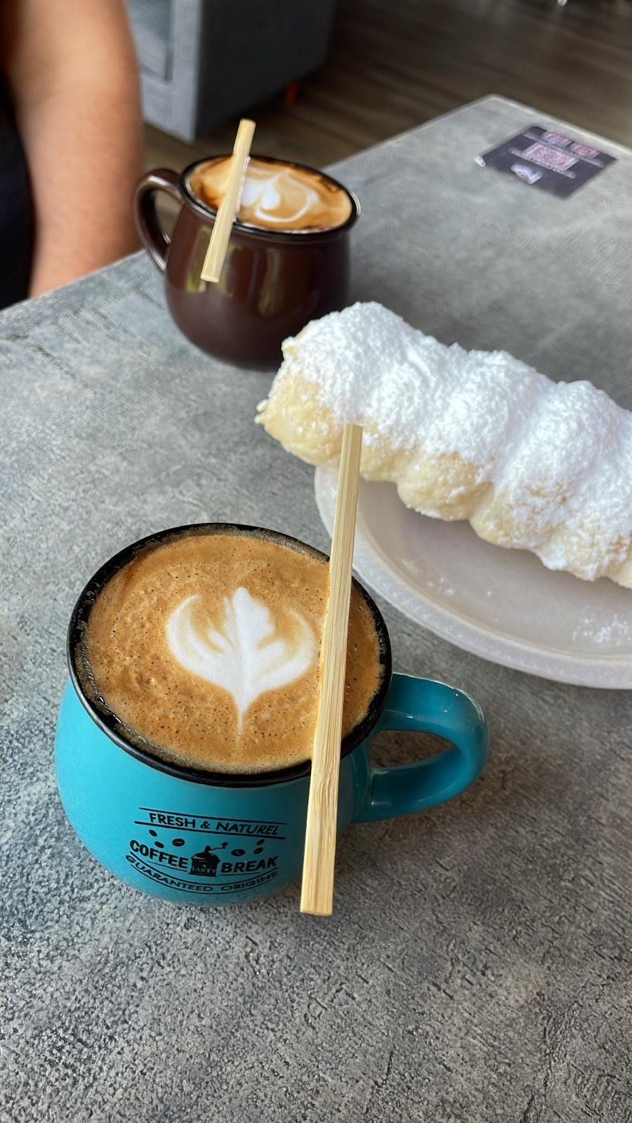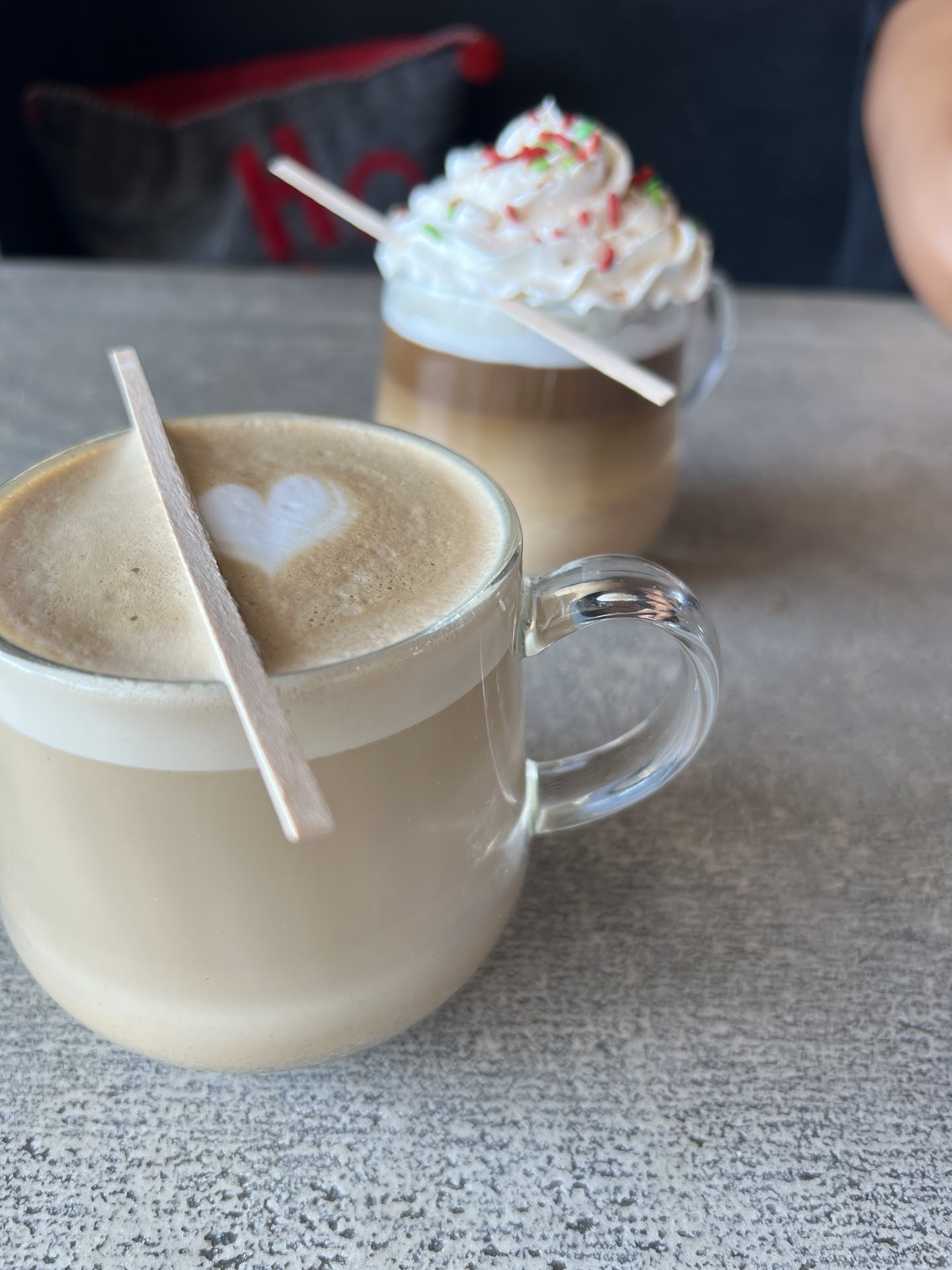 The atmosphere was so chill and relaxing, they had a many variety of areas to sit and relax whether your alone or with friends you can find yourself sitting on a couch, there high tables, loafers, or even there rocking chair next to a large window overlooking the mountain region. The service was also amazing and the lady who was waiting our table was so kind and patient always making sure we were comfortable...