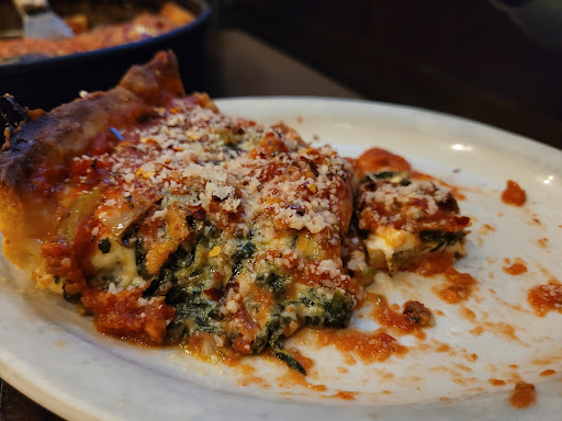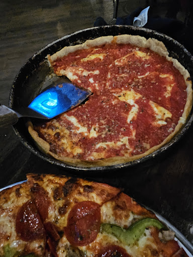 Now we ordered two deep-dish and one thin crust, but after midway thru eating our dinner, we realized we never got the thin crust, and instead, they gave us all three deep-dish pizza, which was way too much for nine people. Thre large deep-dish is too much. After we realized we got wrong pizza ut was too late to.even say anything to him as it would have sounded that we only told him after we were done eating, so we never said anything to him as he took a long time to bring things back to us at our table.