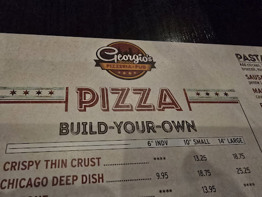 Ā Ā Ā Read moreEveryone has an opinion on pizza, and the locals in Chicagoland have theirs on the deep dish. I'm not from Chicago, but I've had Lou Malnati's, Gino's East, Giordano's, and some local places--in addition to Georgio's on a recommendation from someone who lives in South Barrington. Since I first had Lou Malnati's, the point was settled...until I had Georgio's.