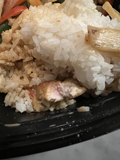 The sichuan chicken was served with veggie fried rice. The whole dish was inconsistently heated with a few spots that were warm and others at room temperature. The fried rice is definitely not fried, and was room temp.