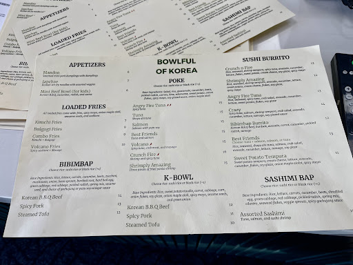 Read moreWent in today with my family and ordered a few items as these are some staples in my everyday life. We ordered the Bulgogi Bibimbap, beef Kimbap, and the bulgogi fries. The freshness of the veggies in the food amplified everything x3 and the bulgogi fries are an ABSOLUTE MUST. We demolished them before we could take a pic. The gochujang sauce was also a solid 15/10.