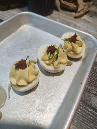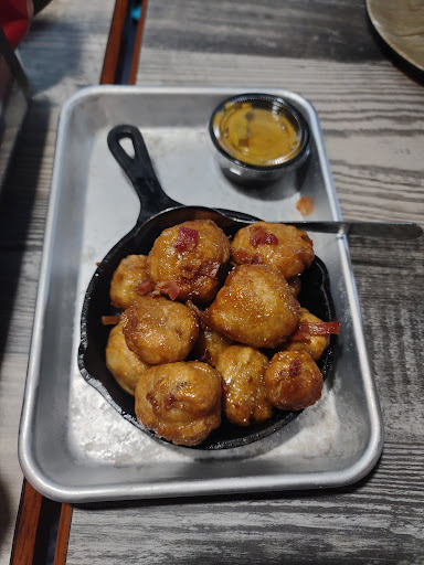 Read moreThe Food was delicious and well portioned. I've never seen Deviled eggs on a menu before. They were an eclectic blend of dill, maple syrup with a piece of andouille on the top. Sounds weird but it blended well with the palate. Poutine was tasty but I prefer brown gravy. The Country gravy on the poutine would have been better if it was poured on after the french fries crisped up a little more with the melted curds to prevent the gravy from curdling but it was tasty. The Brisket was on point. Juicy, flavorful, and healthy portions. Smoky Mac and cheese was one of the best I have tasted in the area, It was creamy and rich. Corn bread, baked to perfection, had jalapenos which gave it a nice little kick. Their slaw was delicious. Not sweet or too much vinegar. Red onions was a great addition, however I would have liked for the shreds of cabbage and onion chopped up a little more instead of long strands to chew easier. Jerk Chicken did not disappoint. No skimming on the spice.Baked beans looked savory traditionally with a piece of fat on top. I ordered the very refreshing Berry Mule mocktail (Any drink on the menu can be turned into a mocktail.) I personally would order the Mac and cheese big portion with Brisket on top rather than building my own plate. It came in a cast iron skillet with corn bread. Overall, I definitely will be back. Very reasonably priced and...