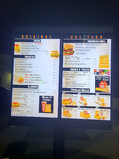 Read moreIf I'm getting tacos from any fast food joint it is del Taco del Taco del Taco del Taco that place for the most part that I like when I order their tacos is that you can tell that the salad and the cheese are healthy parts of what they consider to be a very bad industry for the health the only thing I don't agree with is the very greasy meat but even then I go there a lot and I buy the tacos I just think the meat curry and healthy but I'm not saying that I don't like it because that would be a lie on my part I can't do that and I love the tacos tacos they're very good I'm probably the fries just need a little more salt it's only time ever go somewhere I got to ask him to put a little more salt on the fries and that del Taco but other than that I mean it's great the customer care man I'll give it a 10 cleanliness I give it a 10 food I give it a I give it a chance still even though my doctor is saying that my blood pressure is high because of the and someone will I like the tacos so what other than that yeah I give it a 10 all...
